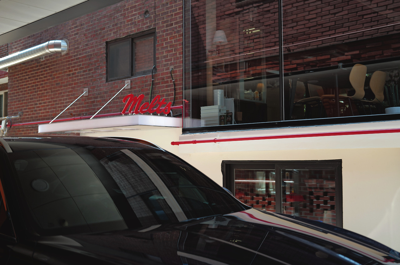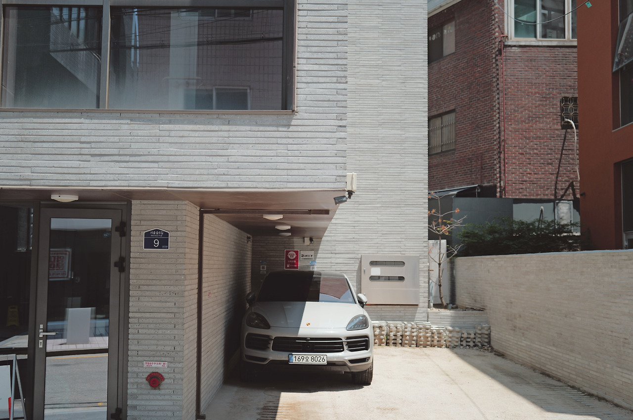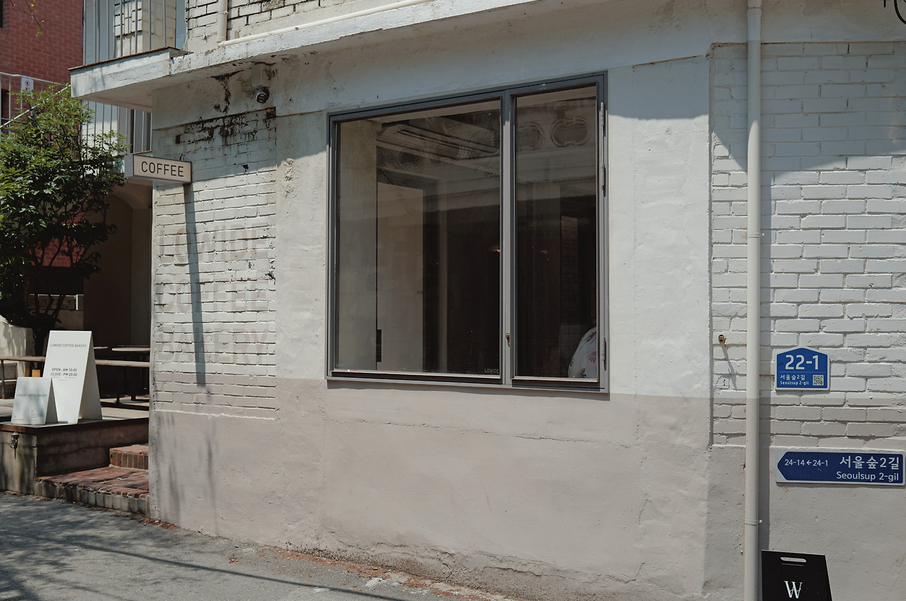 서울숲 카페거리를 걷다 보면, 카페 건물벽에 계절의 빛이 자연스럽게 반사된다.