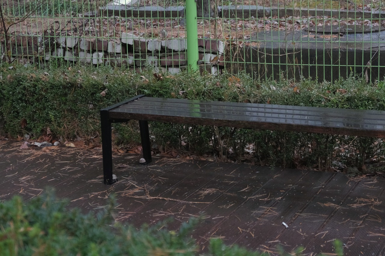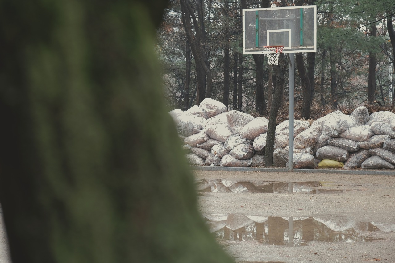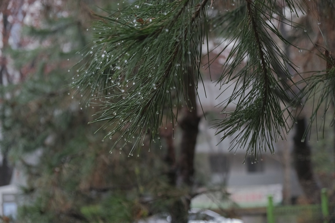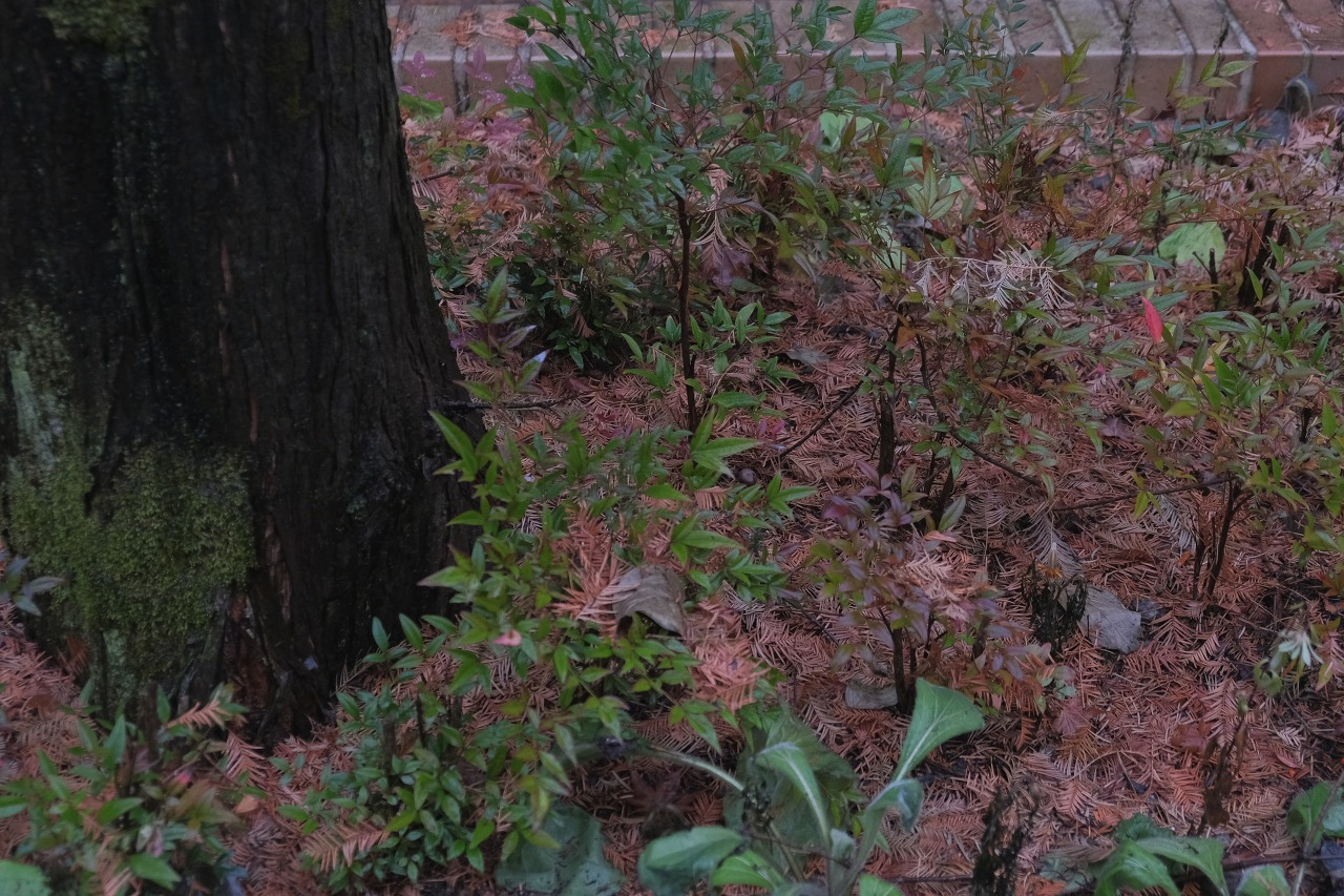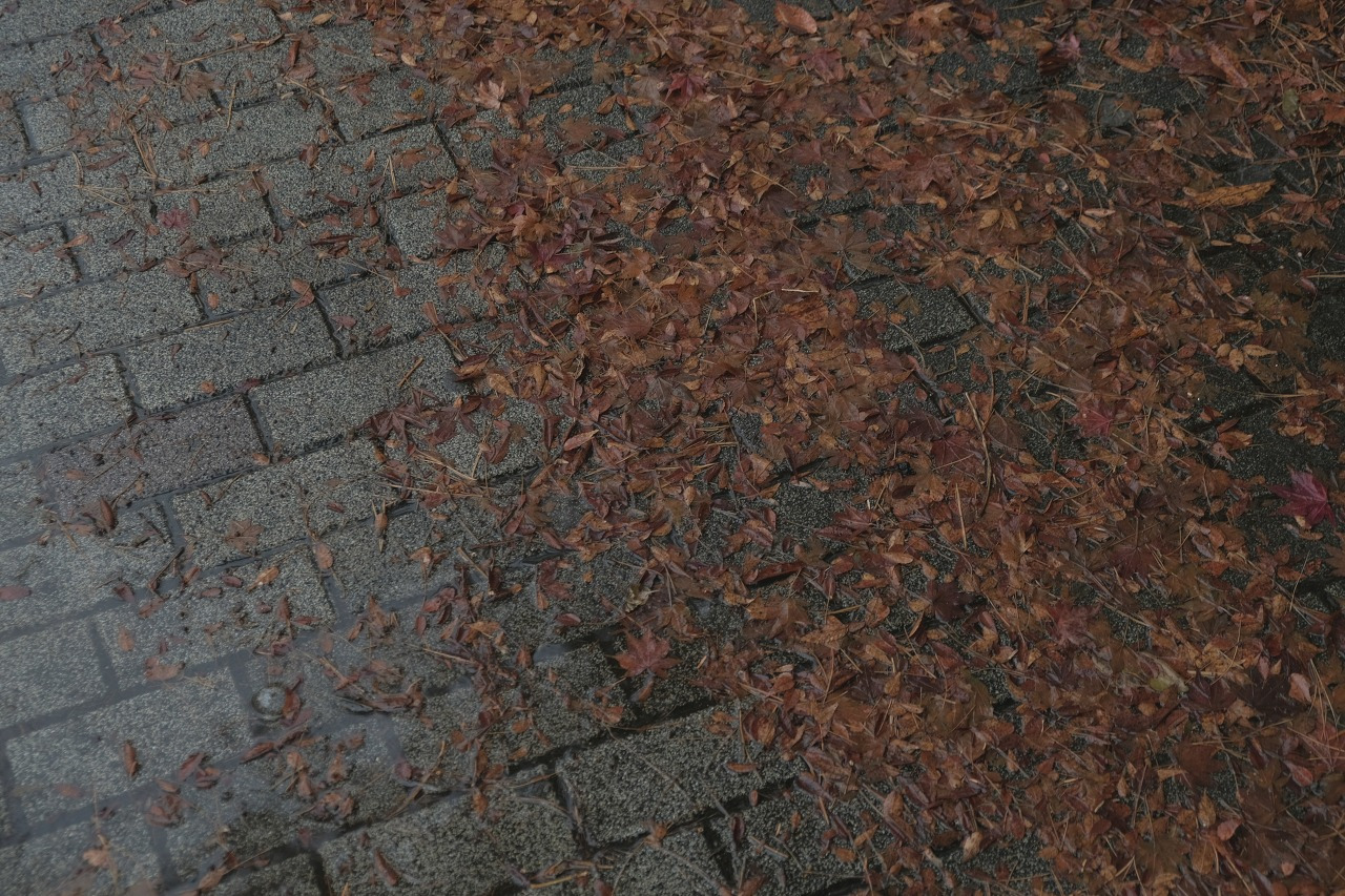 물에 젖은 바닥과 나무들의 색이 달라진다.