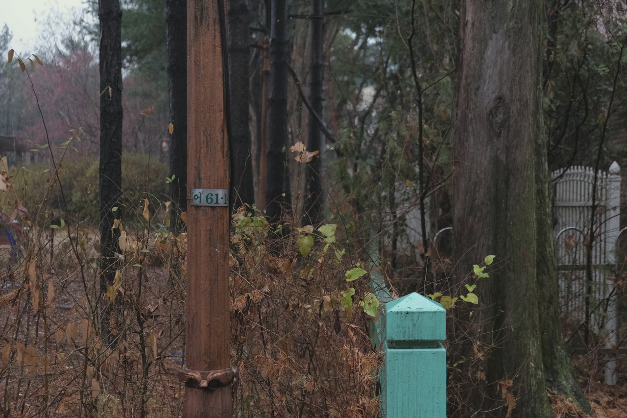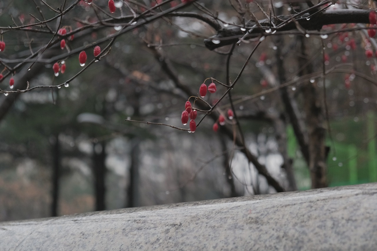 한손엔 우산을 또 한손엔 카메라를 쥐고 사진을 찍는다.