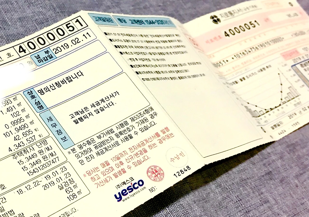 현관문 틈에 누런 종이가 꽂혀있다. 지난달 가스요금 고지서다.