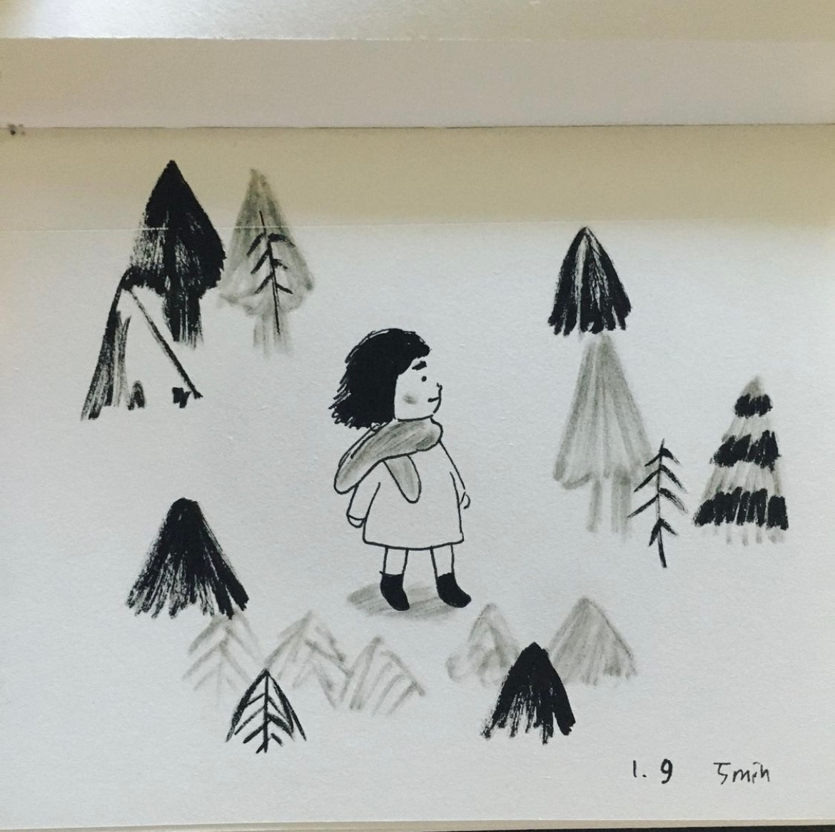 즉흥성도 개발되었다. 가지고 있던 도구 중 거의 다 써서 색이 잘 나오지 않는 붓 펜으로 음영을 넣어보았다. 인스타에서 많이 들었던 호평 중 하나가 이 붓 펜으로 넣은 음영이 너무 마음에 든다는 것이었다. 내가 보기에 만족스러운 것은 기쁘게도 남들 눈에도 좋아 보였다.