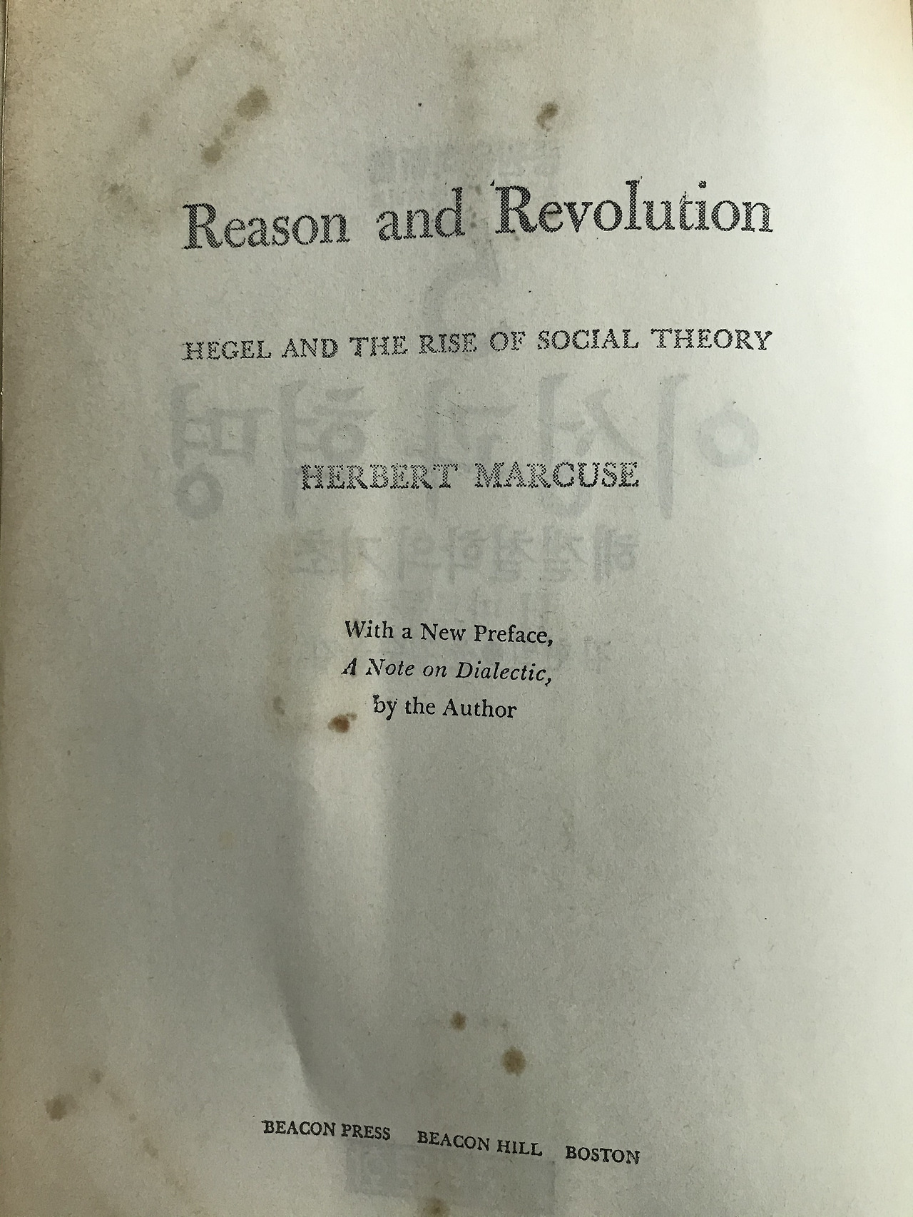독일 철학자 헤르베르트 마르쿠제(Herbert Marcuse)는 하이데거 영향 아래 헤겔(Hegel) 철학을 연구했는데, 나치를 피해 미국으로 망명한 '프랑크푸르트 학파'로 분류된다. 1941년 그는 독일 관념철학이 생소한 미국에 헤겔 철학을 소개하기 위해 [이성과 혁명]을 쓴다.