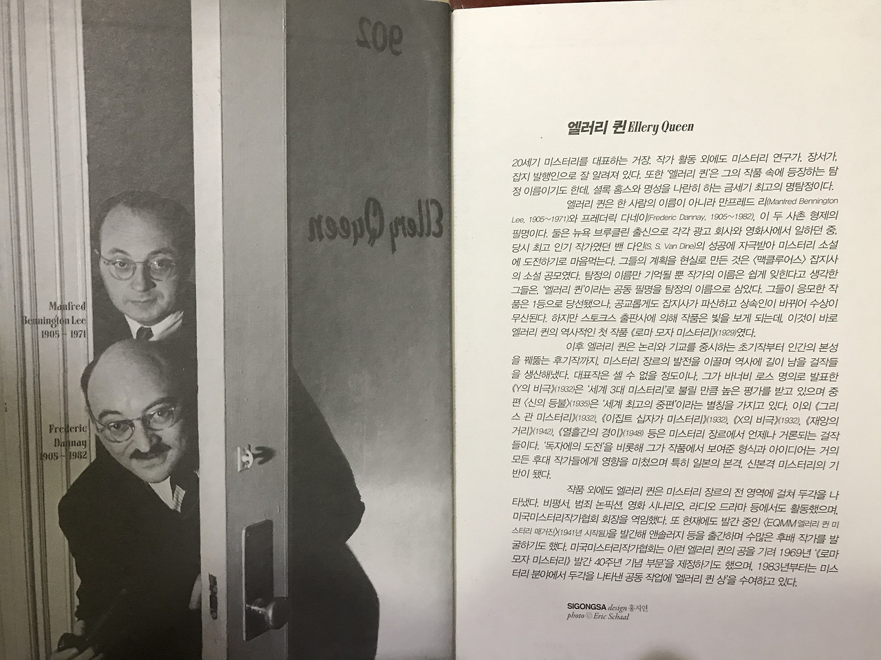 엘러리 퀸을 읽는 시간은 그들의 작품이 백년이 지난 지금도 '미스터리' 소설의 '고전'임이 논리적으로 '증명(Q.E.D)'되는 또 하나의 과정은 아닐런지.