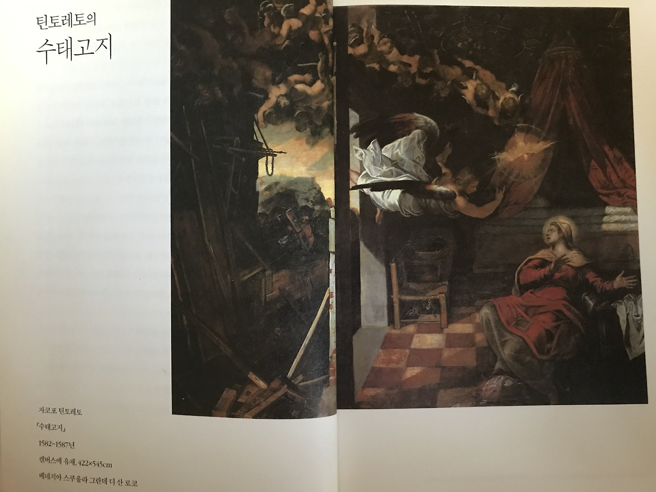 ( <수태고지>, 자코포 틴토레토, 16세기(좌) / 프라 안젤리코, 15세기(우). )