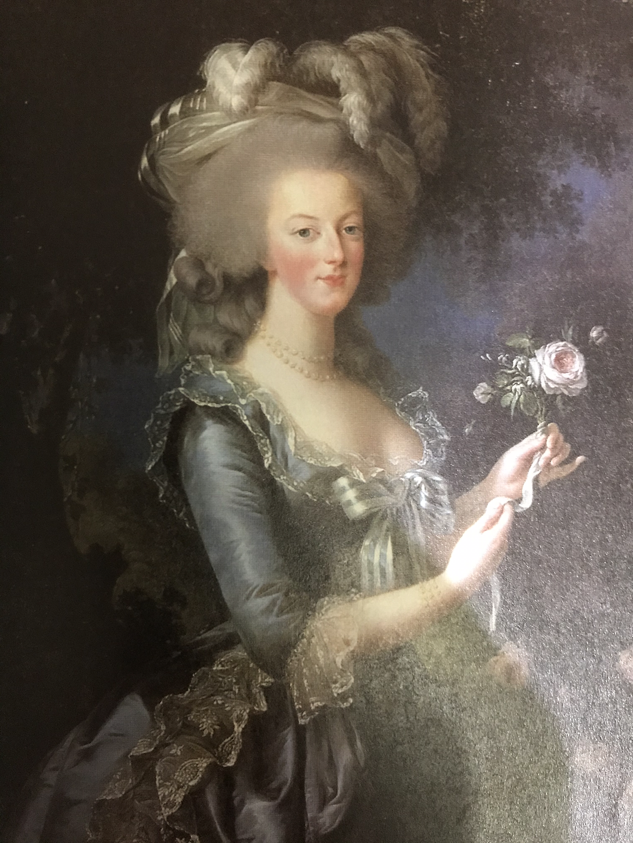 ( <단두대로 끌려가는 마리 앙투아네트 스케치>, 자크 루이 다비드, 18세기(좌) / 프랑스 대혁명 전 '로코코'의 여인이자 루이 16세의 왕비, <장미를 든 마리 앙투아네트>, 르브룅, 18세기(우). )