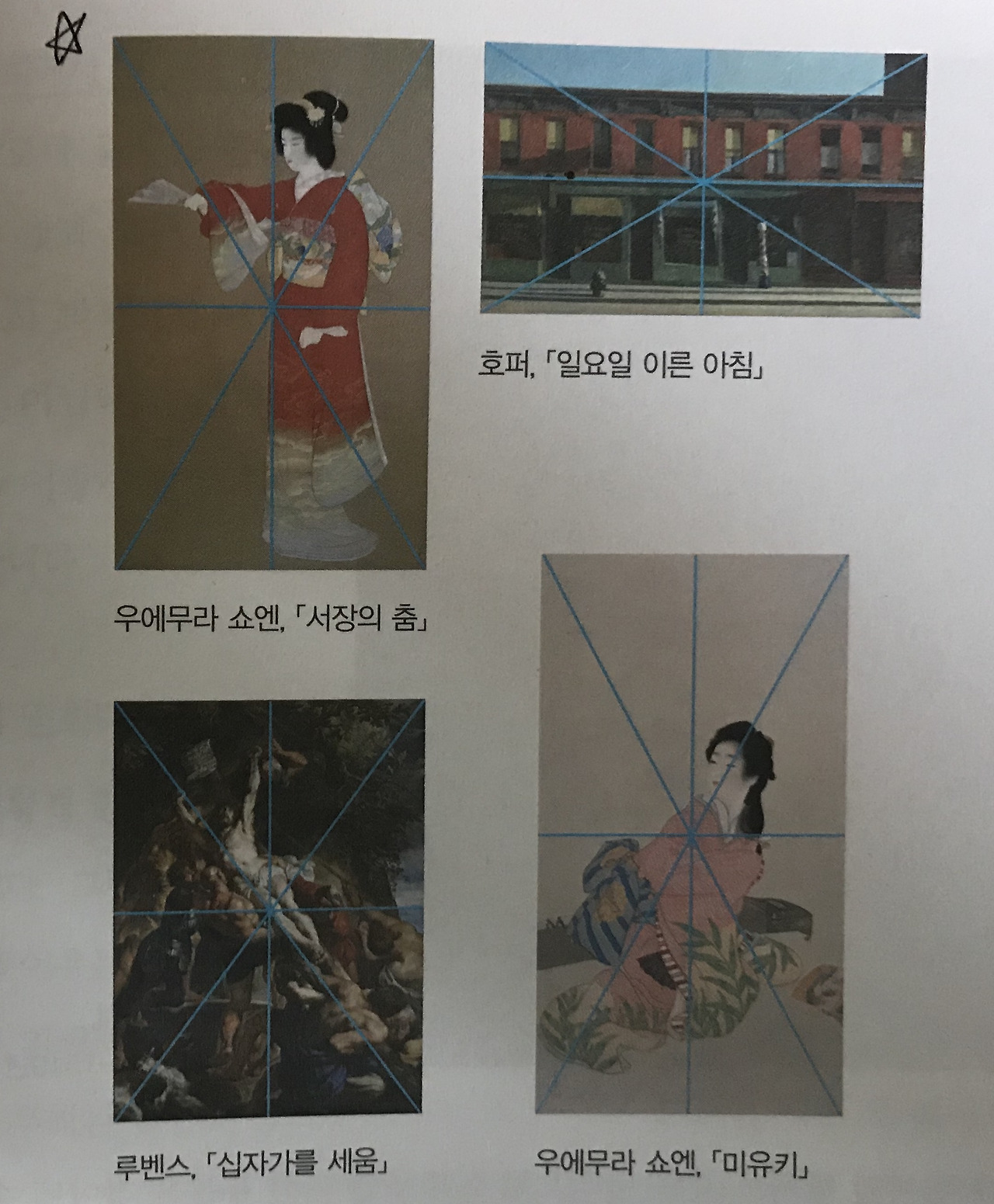3) 가로든 세로든 가상의 '구조선'을 그어 그림의 균형을 잡는데, 이 '선'들의 관계를 '리니어 스킴(linear scheme)'이라 한다.