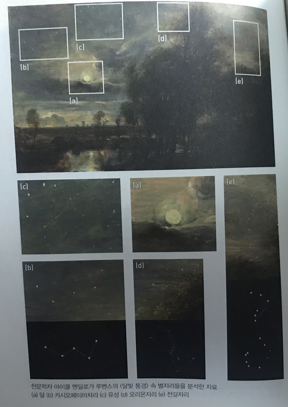 물론, '예술'은 '과학'이 아니므로 있는 그대로가 아니라, 해당 풍경에 화가가 가진 '과학'적 지식을 투영하므로 동시에 보기 힘든 별자리를 함께 그려넣기도 한다. 그래도 문제는 없다. '예술'은 '사실(實)'보다 '아름다움(美)'를 추구하기 때문이다.