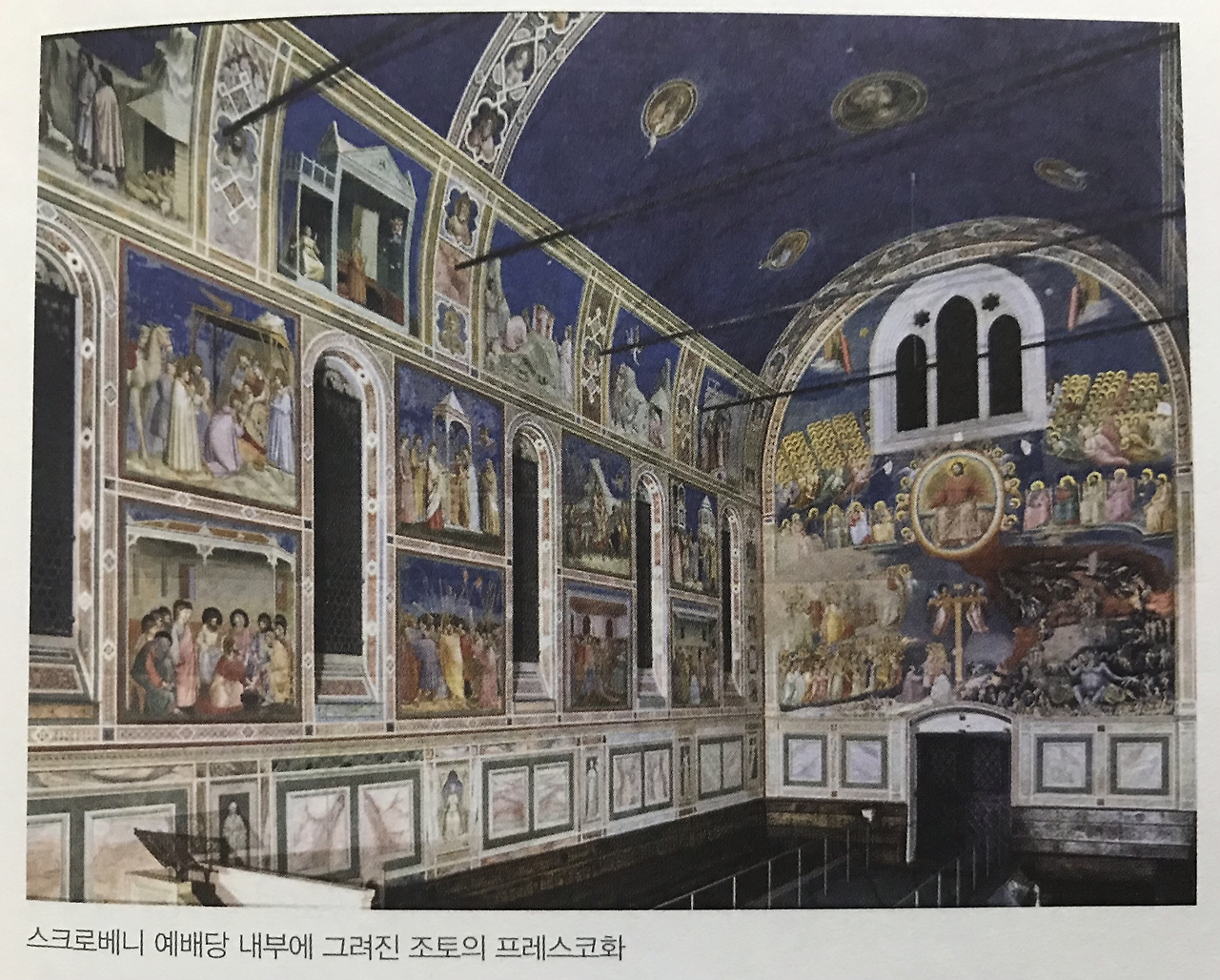 "미술사 책에서는 대개 조토와 더불어 새로운 장(章)을 시작하는 것이 통례이다... 천년 동안 이와 같은 것이 만들어진 적은 한 번도 없었다. 조토는 평평한 평면에서 깊이감을 느끼게 하는 기술을 재발견한 것이다... 피렌체의 화가 조토는 미술의 역사상 완전히 새로운 장을 개척하고 있다. 그의 시대 이후로 처음에는 이탈리아에서, 그리고 뒤이어 다른 나라에서도 '미술사'란 위대한 '미술가'들의 역사가 된 것이다."