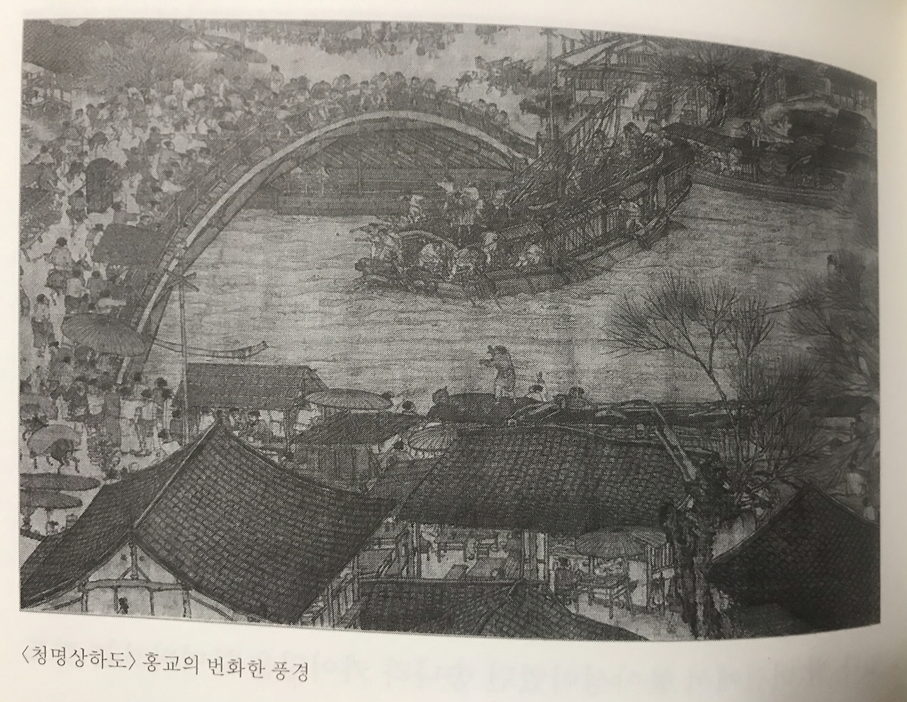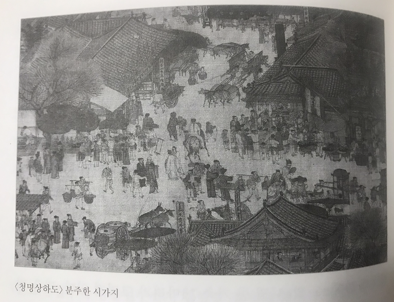 당시 북송 수도 카이펑(개봉/동경)은 이미 인구 150만명의 '메트로시티'였다. 유럽 최대도시 콘스탄티노플이 50만, 런던이 10만에 불과할 때 이미 카이펑은 물자와 유통의 국제적 중심지였다. 5대10국 시대 후주의 세종 시영이 터를 닦았고 그 어린아들 공제로부터 '진교병변'을 통해 선양받아 송나라를 건국한 조광윤이 발전시킨 도시 카이펑은 장택단의 <청명상하도>를 통해 후세에 그 번영의 면모를 보여준다는데 홍교라는 다리 위 즐비한 노점들에서 판 주종목이 바로 '국수'였으며 바쁜 도시에서 빨리 먹을 수 있는 '인스턴트 식품'의 원조라 할 만하다.