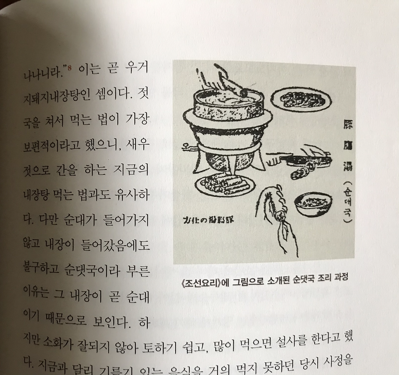 '순대' 또한 각국의 사정에 따라 오래전 중국에서는 애용식인 양고기로 만들었다. 우리는 돼지나 개 또는 민어 창자에 각 채소와 다진고기 등을 넣어 만들었고 중국은 구웠으며 우리는 삶았다. 서양은 훈제 소시지가 비슷할테지만 우리나라 1960년대 돼지고기와 당면이 대중화되기 전에는 재료도 구하기 어렵고 손도 많이 가는 음식이었으므로 역사속 순대는 '고급음식'이었단다. 또한 순대는 양이 많은 짐승의 소장을 주로 쓰는데, '아바이순대'는 양이 적은 대장을 써서 나름대로 고급음식이라고도 한다.