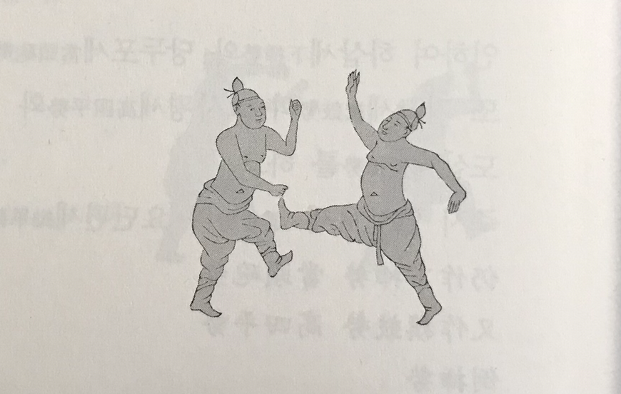 조선 후기 학자 이만영의 [재물보](1789)라는 책에는 '권법'을 이르는 '변(卞)'과 '각력(角力)'에 관한 해설이 있다고 한다. 고대로부터 전승된 우리식 씨름인 '수박(手搏)'을 '변'이라 하고 겨루기를 뜻하는 '각력'은 '무(武)'라고 하는데 당시에는 이를 '탁견'이라고 한다고 적고 있다. 중국 [한서] <애제기>편에 적힌 "변사와 무희를 관람하셨다"는 최초 기록에서 힘을 겨루는 '변'과 '각력'은 고대로부터 '무예놀이(무희:武戲)'라는 주석이 나왔다는데, 황해도에 있는 우리의 고구려 안악 3호분묘 벽화에도 맨손무예인 '수박'의 장면이 등장하는 것을 보면 오래전부터 이런 격투기 대련은 관람의 대상이었음을 알 수 있다. 고대 그리스의 올림픽에서도 '레슬링'이 고전종목이었다. 조선 후기로 오면 이 맨손무예를 '탁견'이라 불렀단다. 우리 태권도의 원형으로서 '택견'의 어원에 관한 기록이다. 전통 무예로서 그 역사와 정신을 추적하는 태권도협회의 노력은 우리 권법의 사료적 기원을 우리식 무예서에서 찾을 것인데, 우리식 '권법' 총화의 원형은 사도세자의 [무예신보]에 전하는 '18기(十八技)'에서 찾는다.