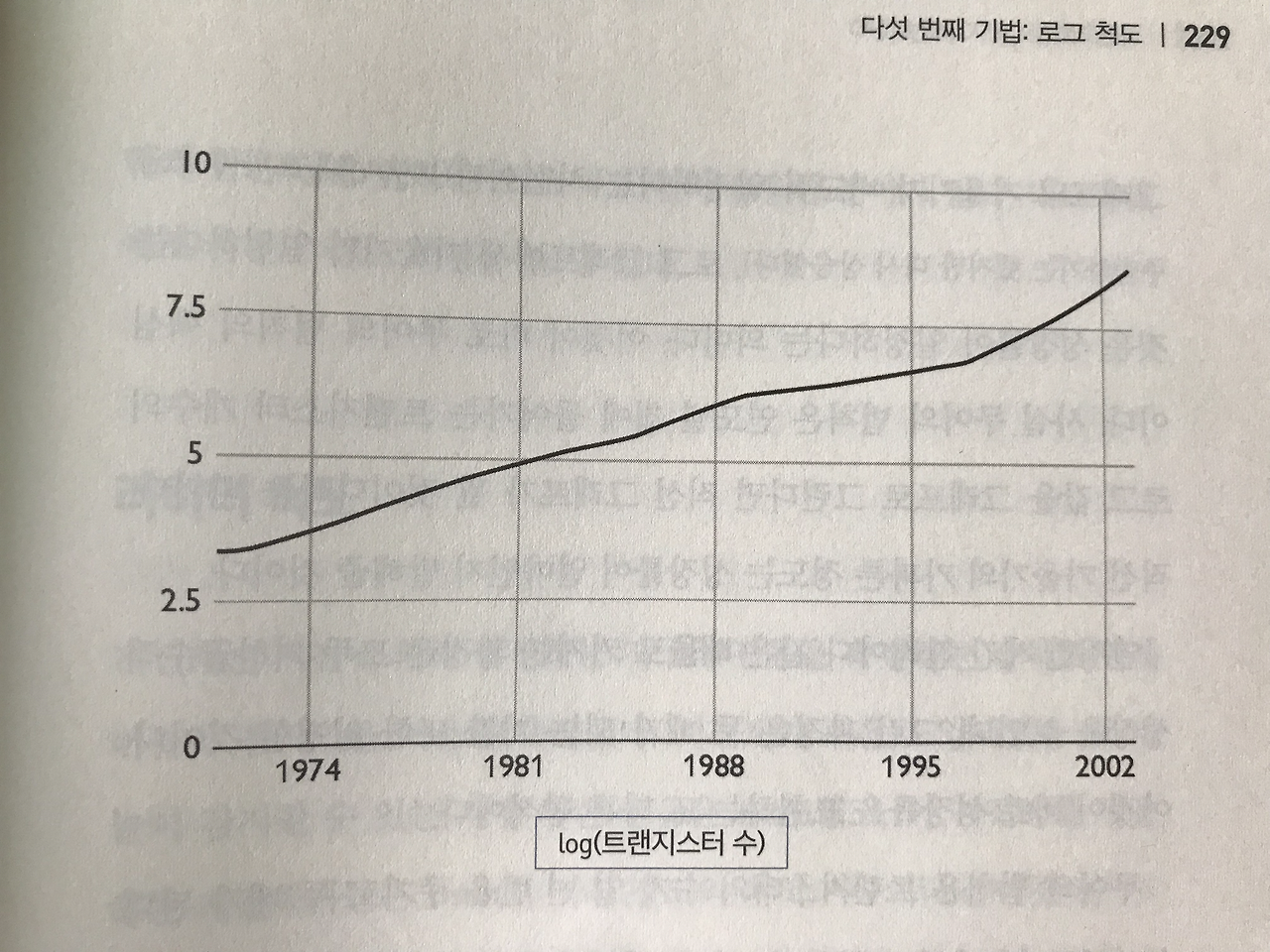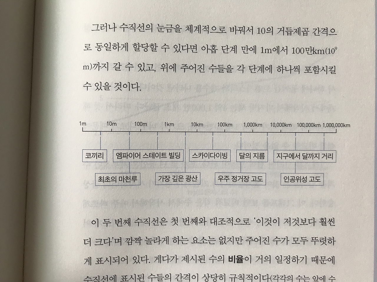 다섯째, '로그(log) 척도' : 10진법의 지수와 배수를 이용하여 크기 차이가 매우 큰 기하급수적 수치 변화를 표현하고 이해한다.