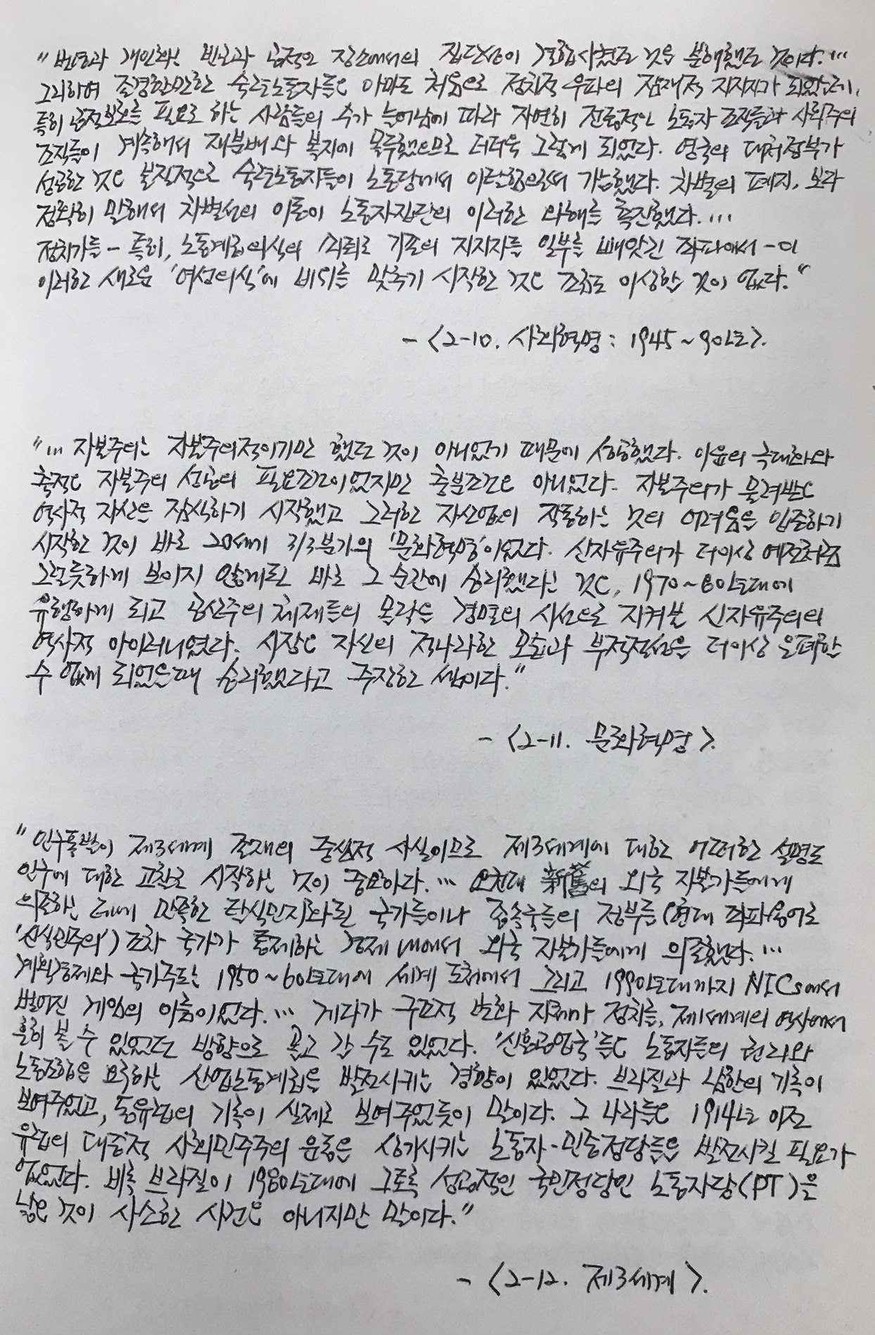 20세기의 경제기적은 '자유주의'적 주류경제학의 '자유방임'이 아니라 케인스주의적 '보호무역'과 완전고용 및 수요창출에 기인했다(같은책, <3-19>).