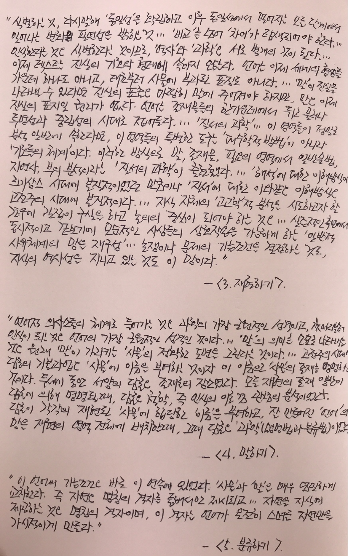 그렇다고 결코 '구체적'이었다는 말은 아니고 장황하지 않았다는 말은 더더욱 아니며 미셸 푸코 욕을 안했다는 말은 아니다.