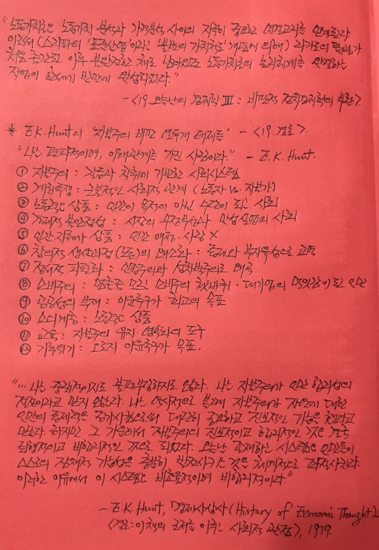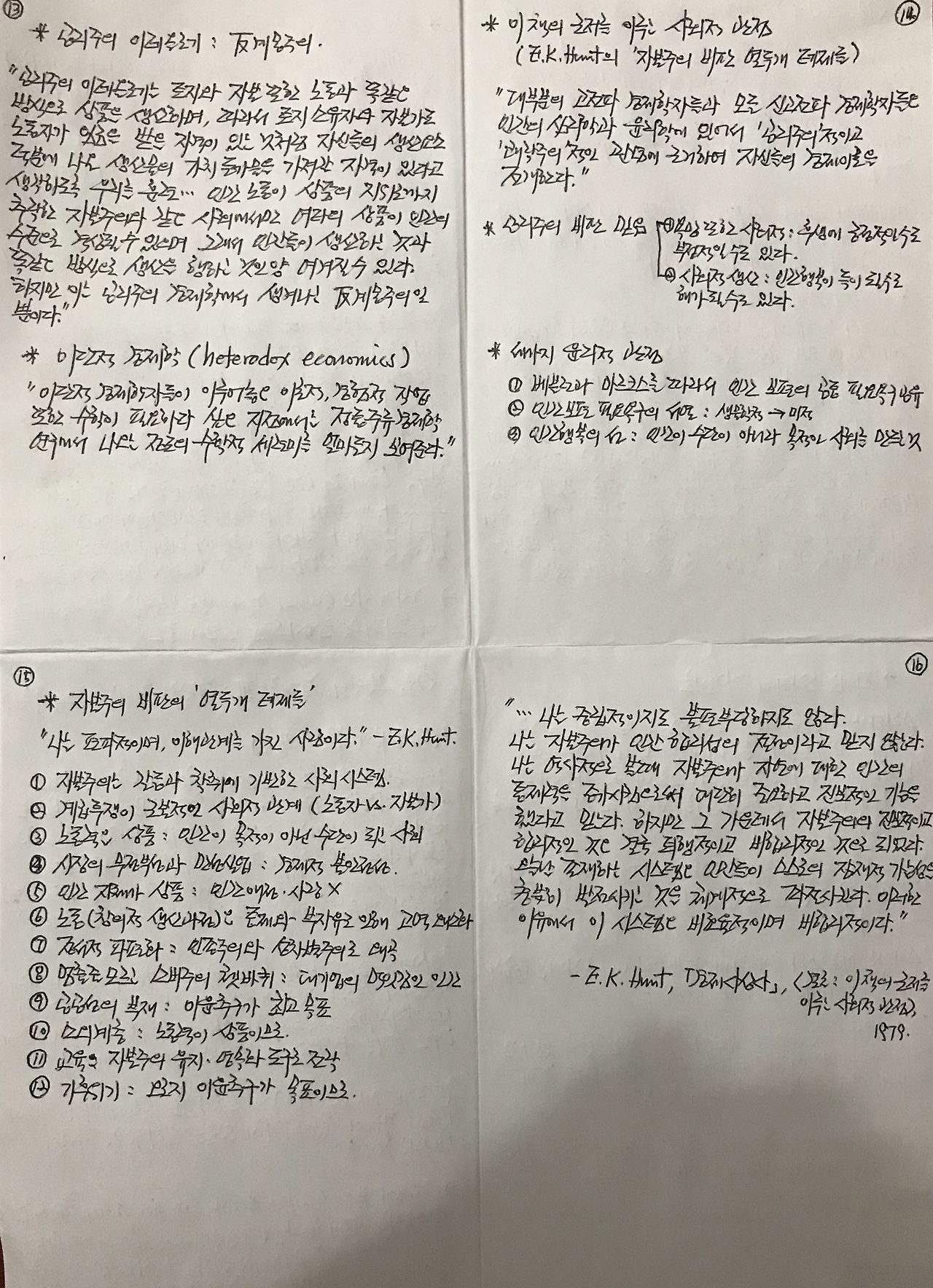 이후 2008년 세계 자본주의 체제위기를 거쳐 <18장>의 '제도주의'와 '포스트 케인스주의', <19장>의 '비판적 정치경제학'의 부활이 마크 라우첸하우어에 의해 증보된 듯 한데, 40년이 더 지난 3판에서도 헌트의 초판 결론은 변함이 없거나 오히려 더 강화되었을 수도 있다.