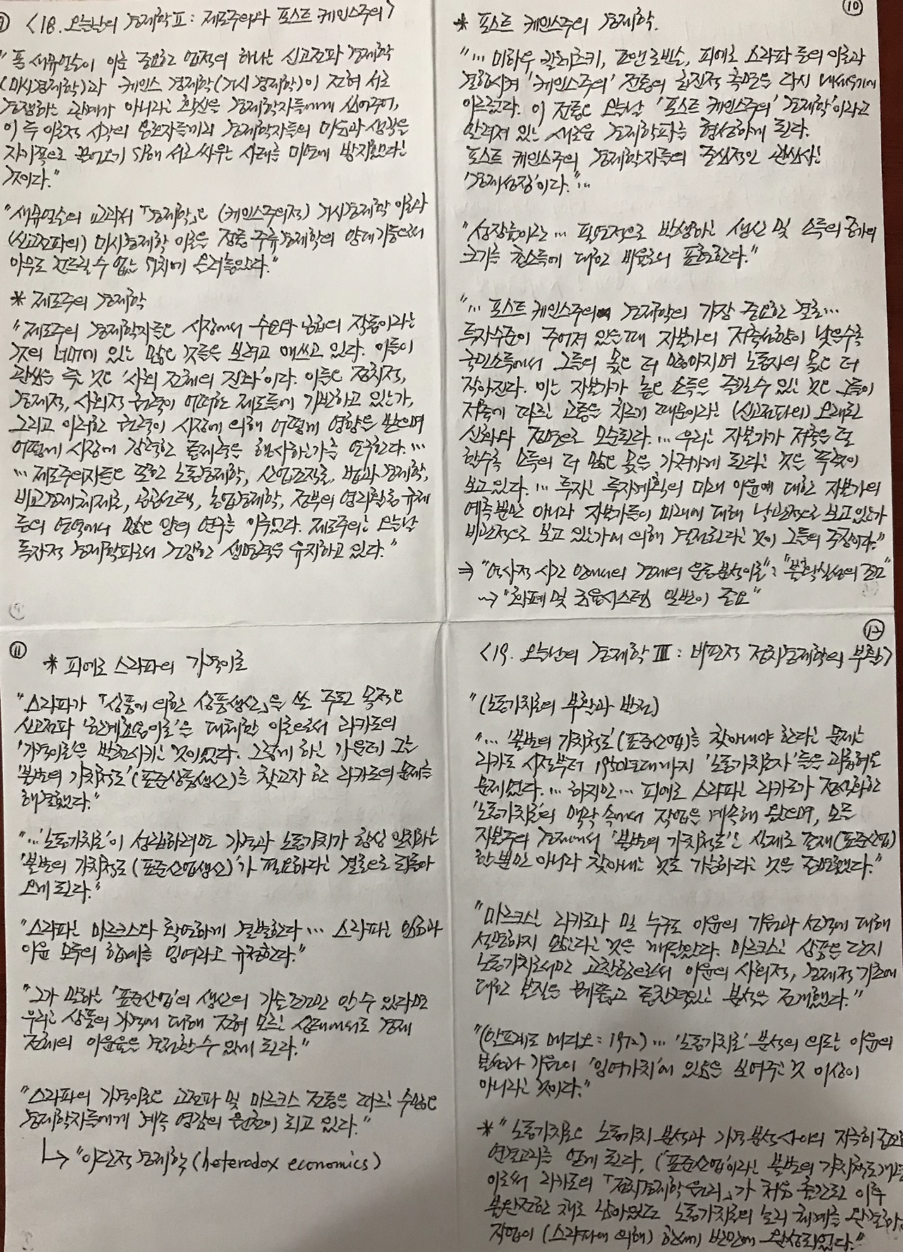 '수학'이 아니라 '역사학'과 함께 듣는 '경제학', 1994년 2학기에 영문과 2학년인 내가 들었던 경제학과 강의는 '경제학사(經濟學史)'였다. 재미있었지만 학점은 'B'였다. '경제학'에 자신이 생겨 내친 김에 1995년 3학년 1학기에 신청한 경제학과 교양필수 '경제학 원론(原論)'은 주류 미시경제학을 나 나름의 마르크스 정치경제학 관점에 입각하여 노트하고 '비판'적 시험 답안지를 제출한 결과 'C+'을 맞았다.