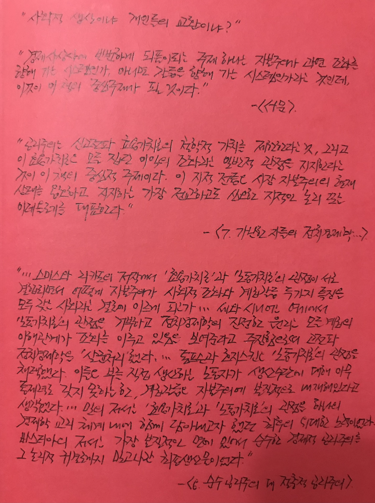 '경제학'에 아주 잠시 관심을 두었던 이십대 초반 한때 나의 관심사는 '자본주의'였다. 당시는 아직 마르크스의 [자본론] 원전을 마저 읽지 못한 상태였는데, 1990년대 초반의 대학 분위기에 편승하여 선배들을 따라 '과학적 사회주의'를 학습했고, 이에 따라 '자본주의'를 '과학'적으로 비판하는 '철학'을 지향했다.