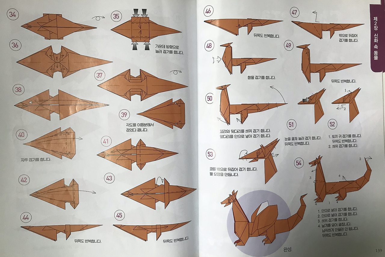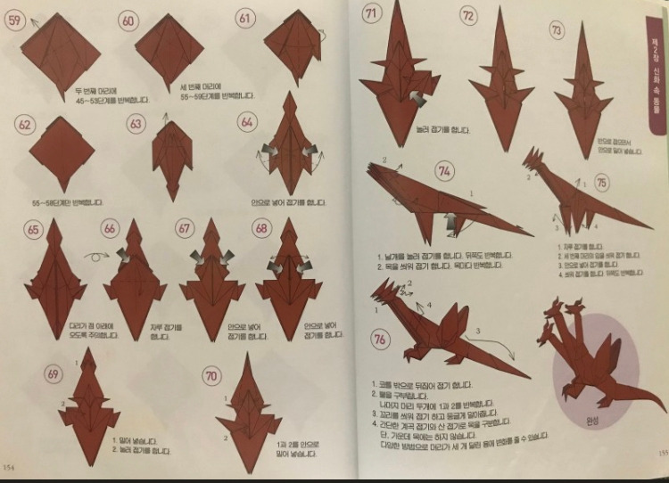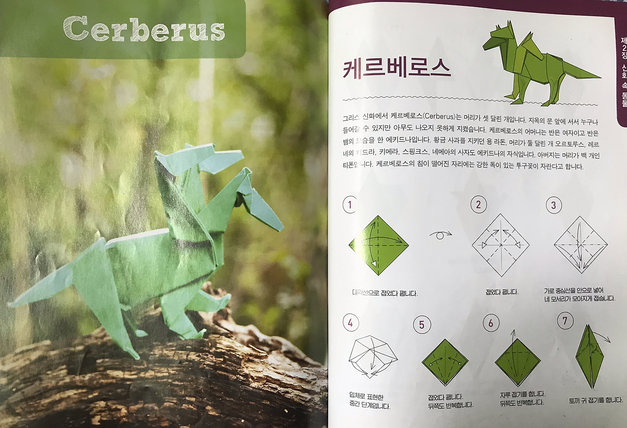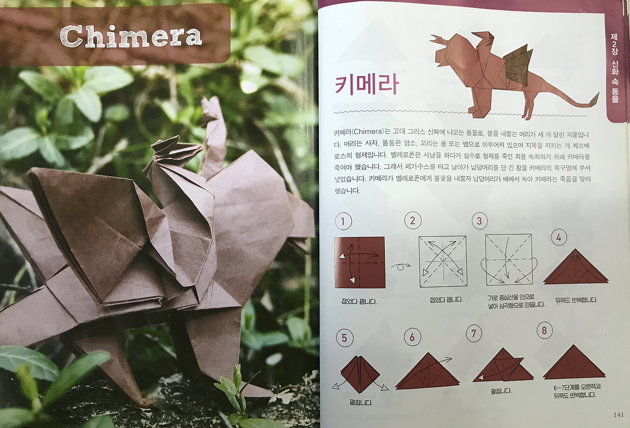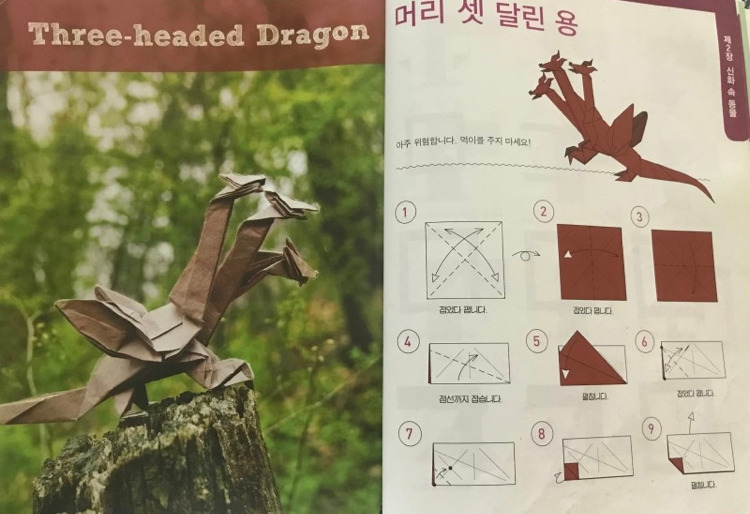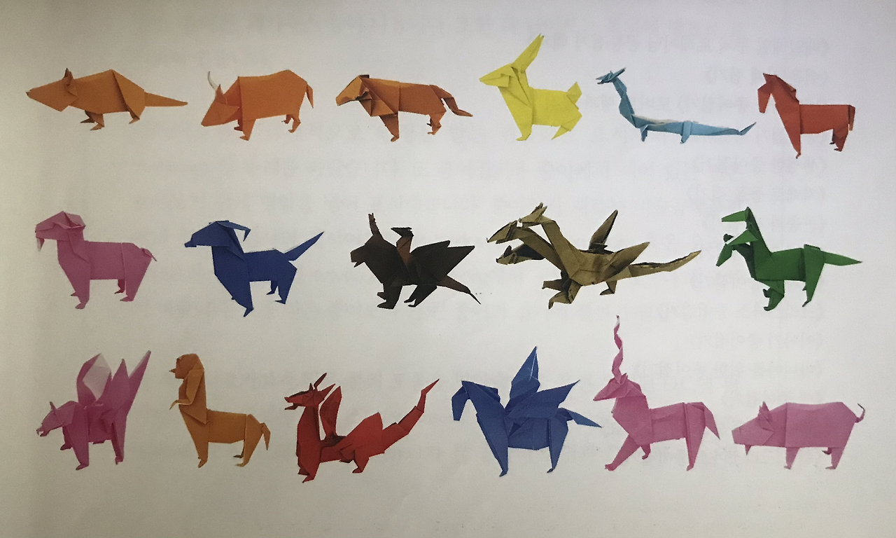 우리 둘째딸 송은규양은 나를 닮아서 그림과 공작활동, 종이접기 등을 좋아한다. 어린 시절 재성이의 다락방이 생각난 나는 종이접기 책을 검색하여 몇 권 사주었는데, 종이접기(origami) 세계에서는 미국의 수학자 로버트 랭과 존 몬트롤, 일본의 후지모토 무네지 등이 유명하다. 이들의 종이접기 창작능력을 보노라면 가히 '오리가미' 천재들이라 아니 말할 수가 없이 감탄스럽기 그지없다. 이 중 존 몬트롤(John Montroll)은 어린이들이나 성인남성들도 좋아할 공룡이나 신화속 동물(Mythological Creatures), 12지신(Chinese Zodiac) 등을 많이 접는데, 그의 책 [신화동물접기백과]의 최고난이도는 <키메라>(140pg)와 <머리 셋 달린 용>(148pg)이다.