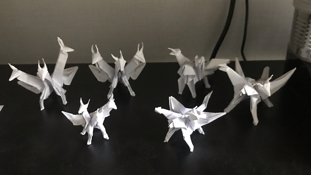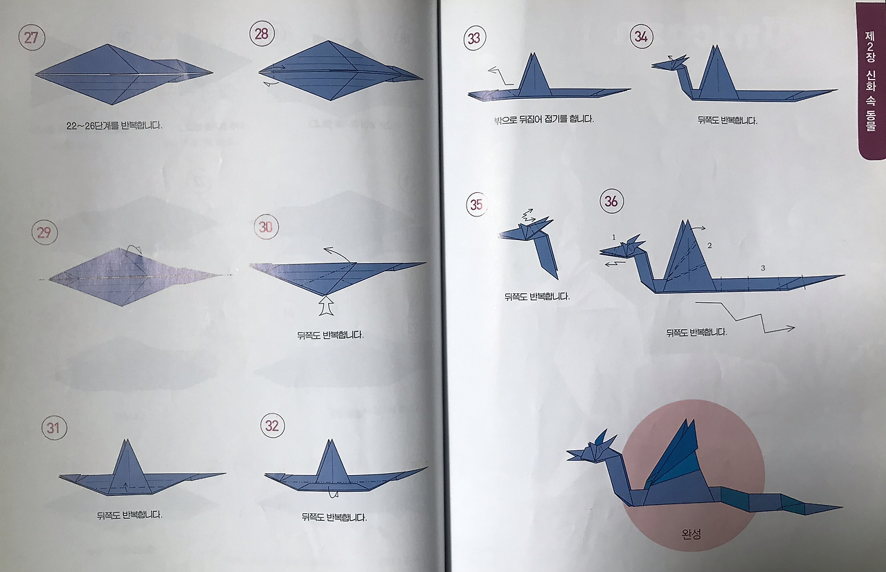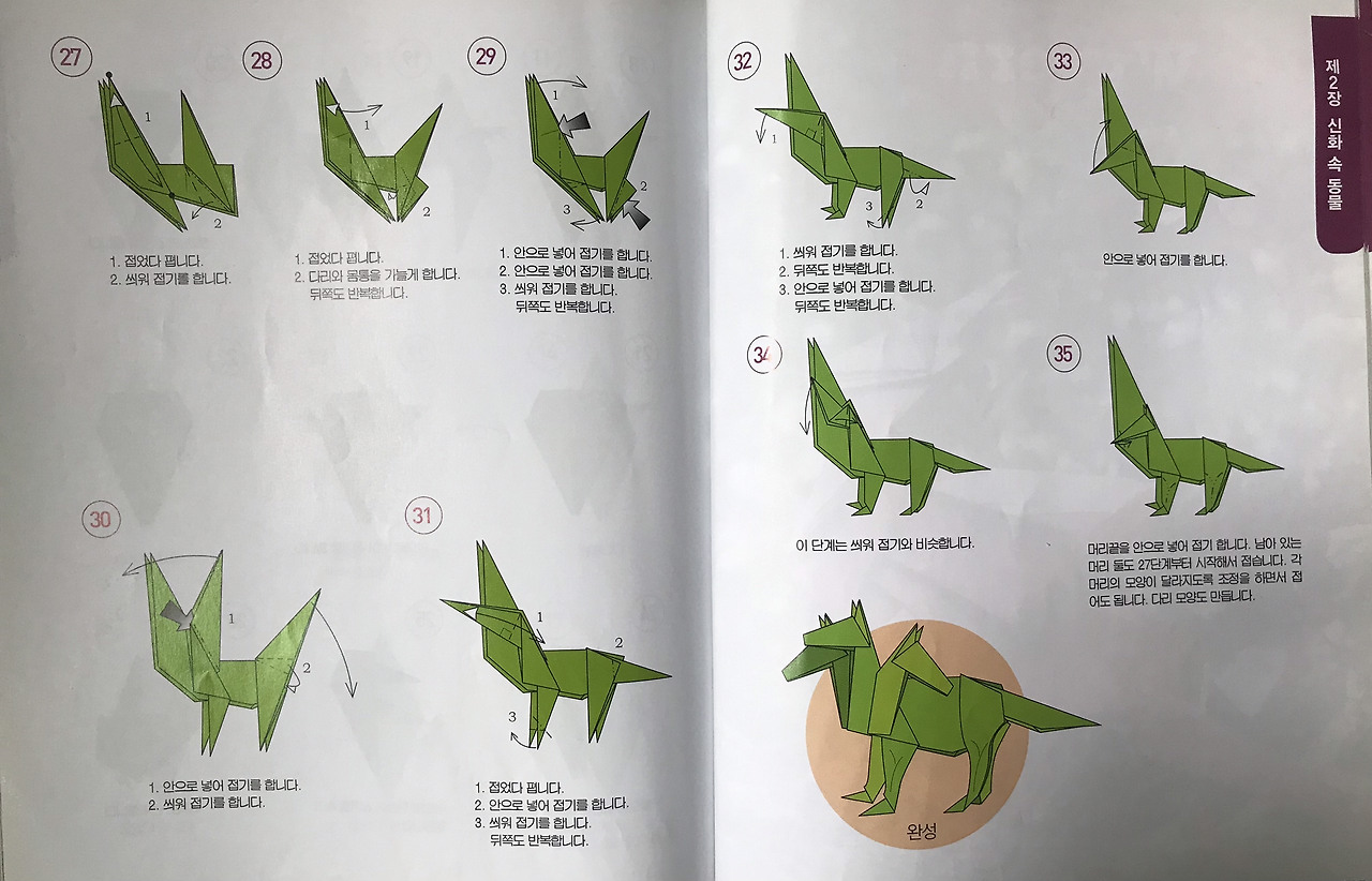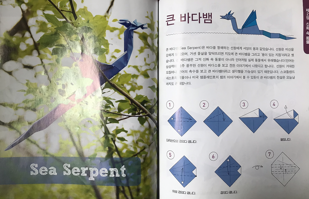 우리 둘째딸 송은규양은 나를 닮아서 그림과 공작활동, 종이접기 등을 좋아한다. 어린 시절 재성이의 다락방이 생각난 나는 종이접기 책을 검색하여 몇 권 사주었는데, 종이접기(origami) 세계에서는 미국의 수학자 로버트 랭과 존 몬트롤, 일본의 후지모토 무네지 등이 유명하다. 이들의 종이접기 창작능력을 보노라면 가히 '오리가미' 천재들이라 아니 말할 수가 없이 감탄스럽기 그지없다. 이 중 존 몬트롤(John Montroll)은 어린이들이나 성인남성들도 좋아할 공룡이나 신화속 동물(Mythological Creatures), 12지신(Chinese Zodiac) 등을 많이 접는데, 그의 책 [신화동물접기백과]의 최고난이도는 <키메라>(140pg)와 <머리 셋 달린 용>(148pg)이다.