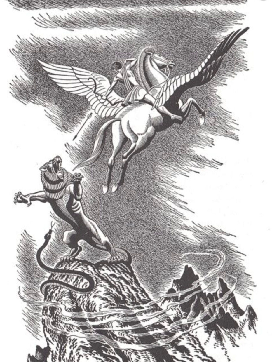 고대 그리스 제우스신의 아들이자 미케네 문명을 건설한 그리스 최초의 반신반인 영웅 페르세우스가 메두사의 목을 치자 그 피에서 날개달린 천마 <페가수스>(116pg)가 태어났고, 이후 코린토스의 용사 벨레로폰은 이 페가수스를 타고 뤼키아의 괴수 <키메라>(140pg)를 처치한다.