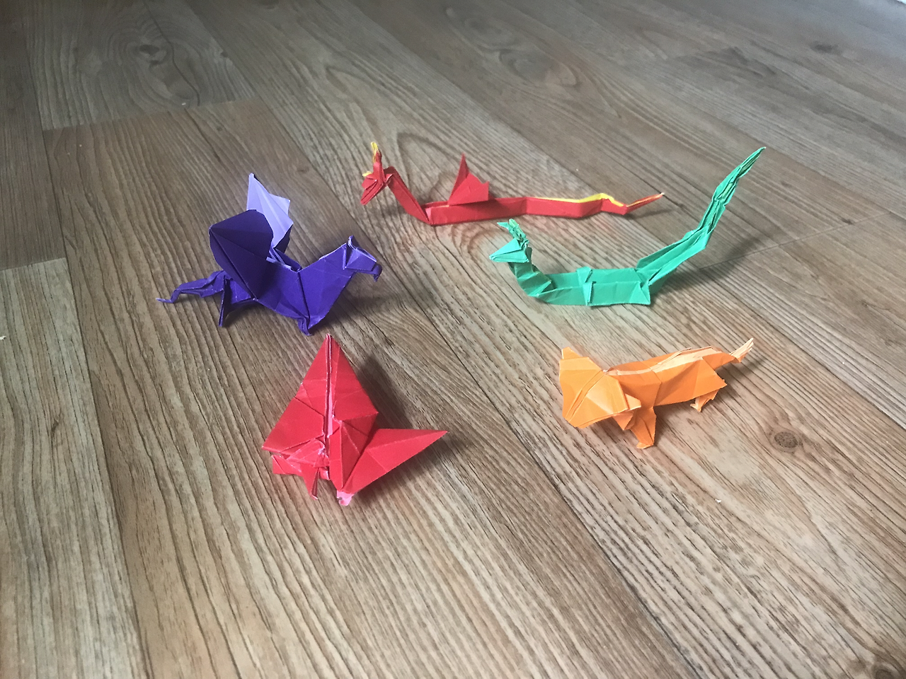 존 몬트롤의 책에서 <머리 셋 달린 용> '기도라' 못지않게 별 네 개의 최고 난이도를 자랑하는 <키메라(키마이라)>를 다음 목표로 잡았는데, 역시 최고 난이도인 기도라를 마스터하니 기도라를 접는데 쓰인 온갖 기술과 패턴들의 반복이라 실패없이 금방 키메라를 접을 수 있었다.