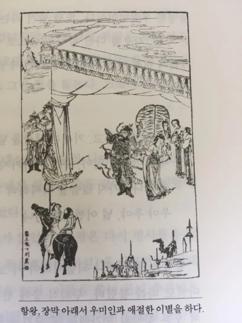 유방 최후의 적수 초패왕 항우도 해하에서 ‘사면초가’를 듣고는 유방에게 패배를 인정한 후 총애하는 우미인과 준마 추를 앞에 두고 독주 한 잔 마시면서 시를 한 수 읊는데 이 노래는 유방의 [대풍가]보다 유명한 [해하의 노래(해하가)]다.