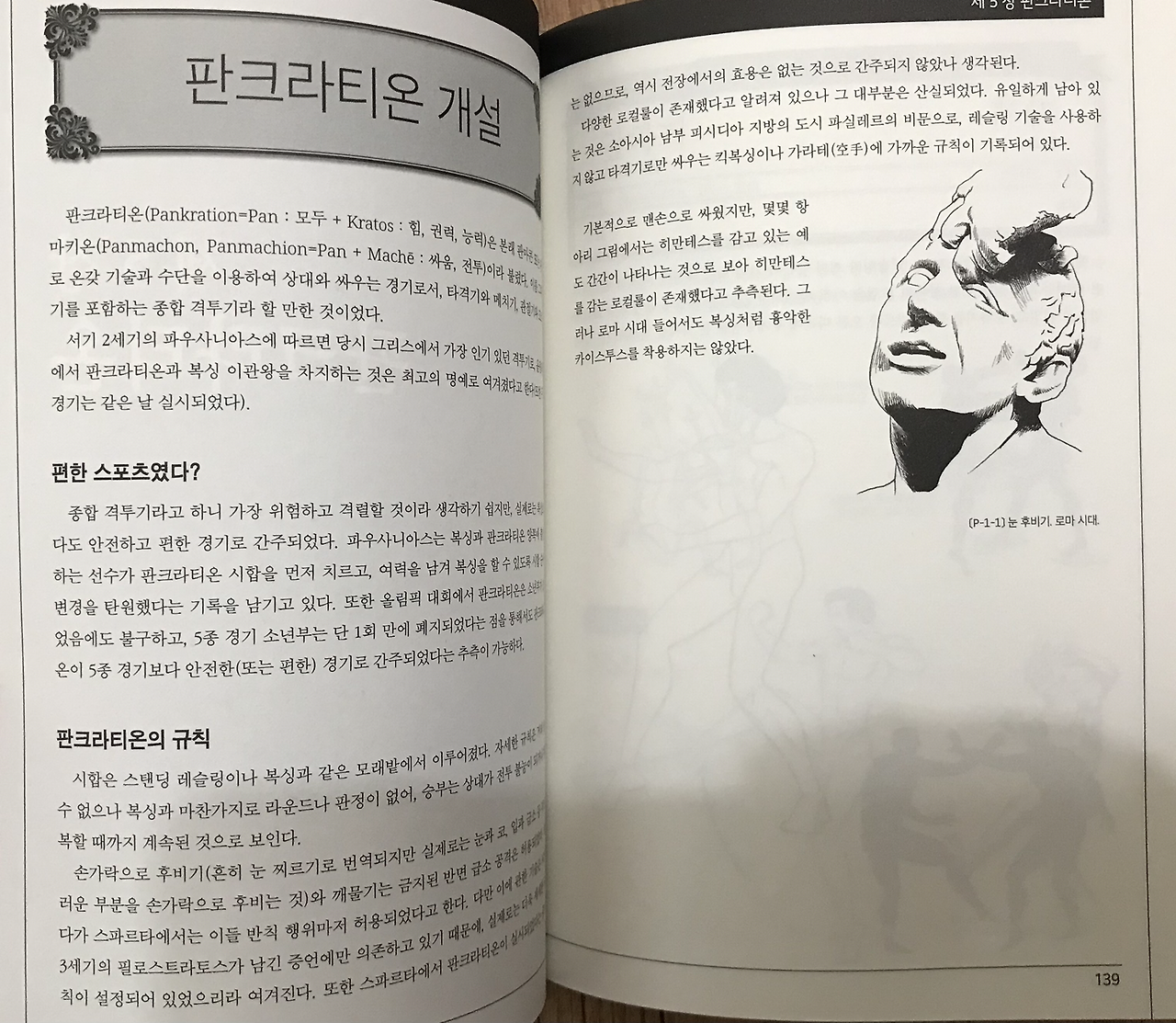 오사다 류타는 [고대 격투기]에서 고대 메소포타미아로부터 이집트를 거쳐 그리스 및 로마시대 서기 4백년까지 무술의 역사를 돌아본다. 복싱과 레슬링, 이 둘의 혼합과 같은 판크라티온(이종격투기)과 곤봉술, 검투사의 종류 등 온갖 사소한 지식을 풀어놓는다.