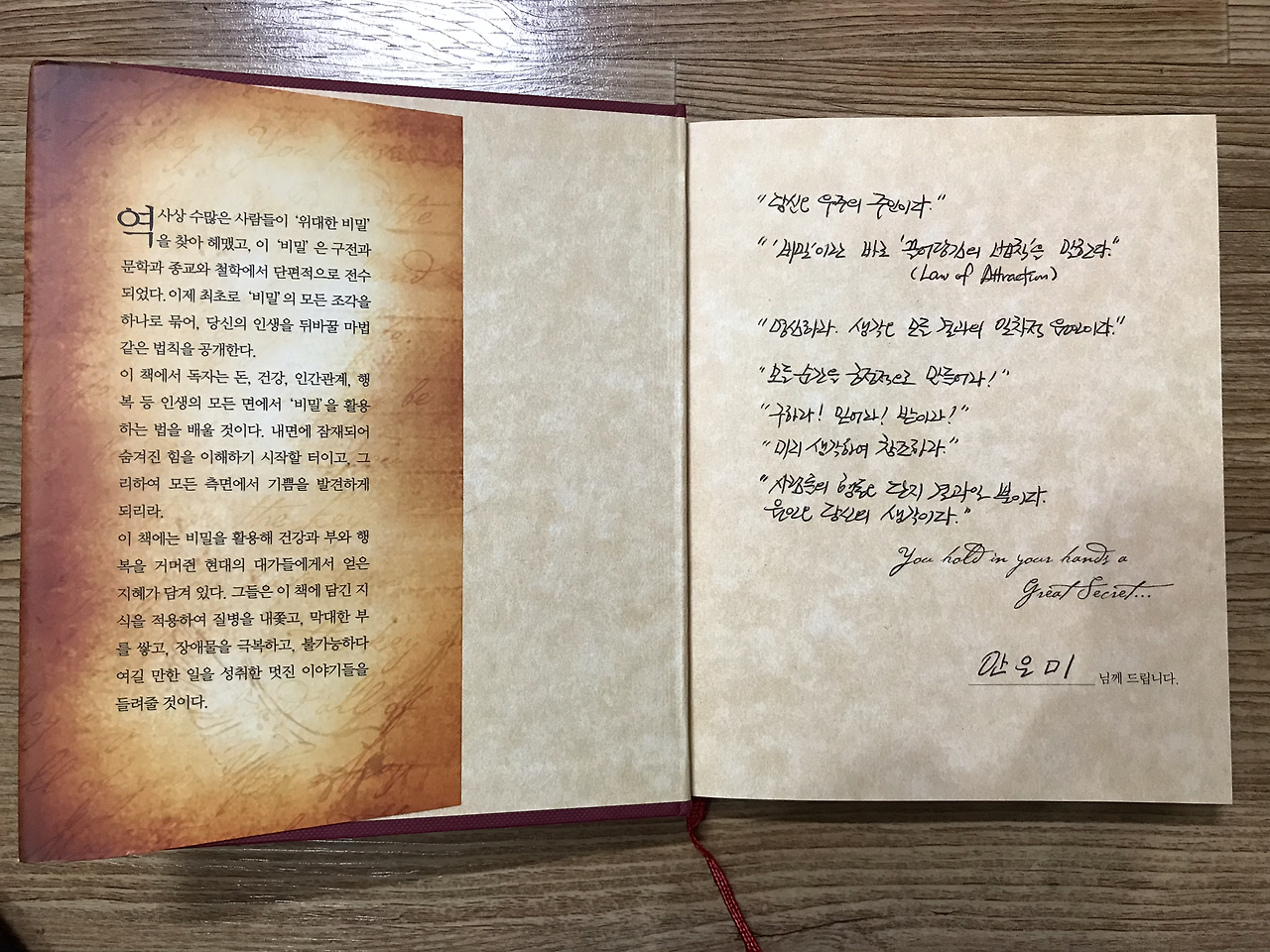 부자가 되고 싶고 성공하고 싶은 전세계의 수많은 대중들이 이 '비밀'에 열광했고, 심지어 우리 회사에서 전혀 책이란 걸 읽을 것 같지도 않던 한 임원이 이 책을 추천하기도 했다.