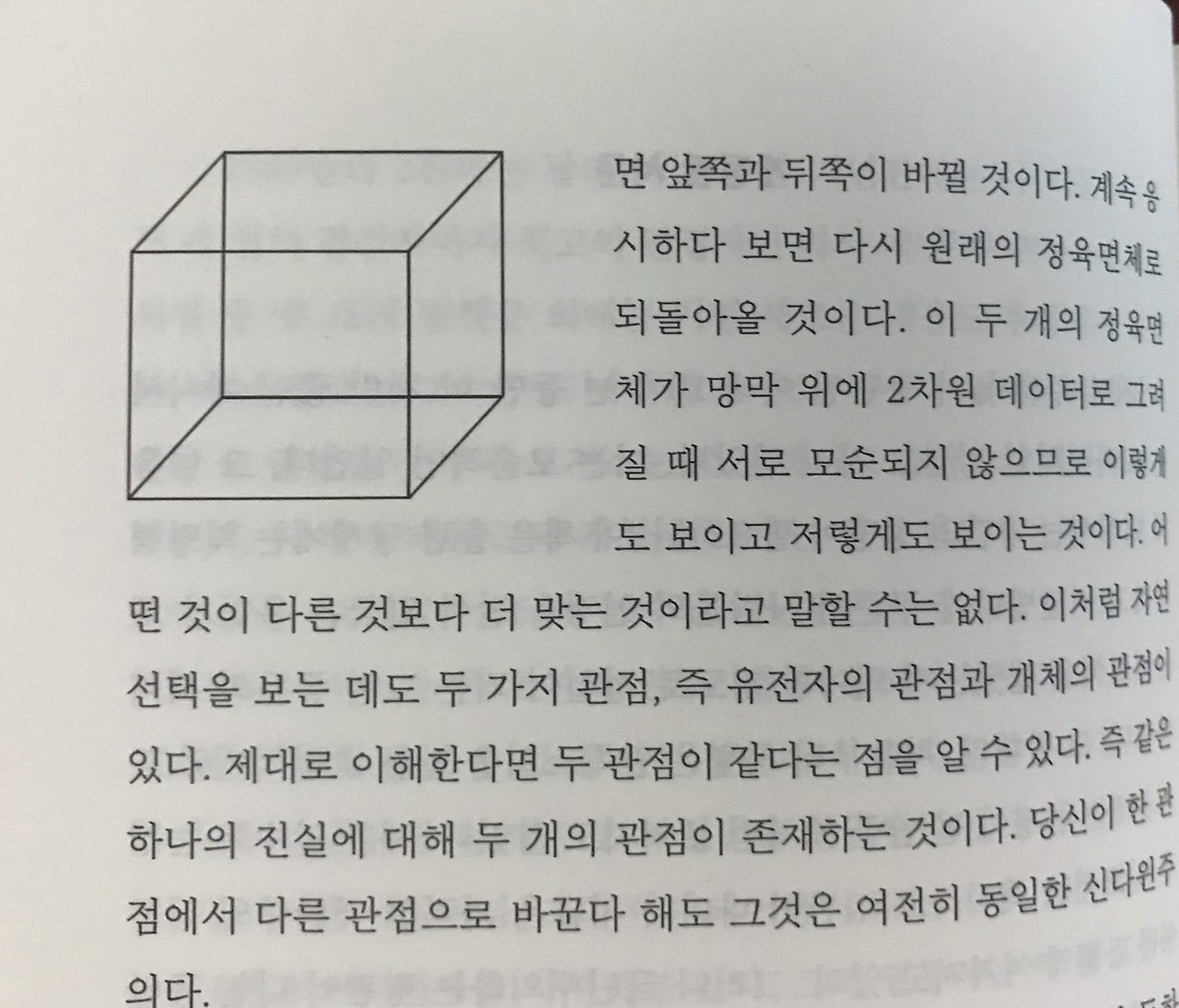( [이기적 유전자], <개정판 서문>에서 비유된 '네커 정육면체' )