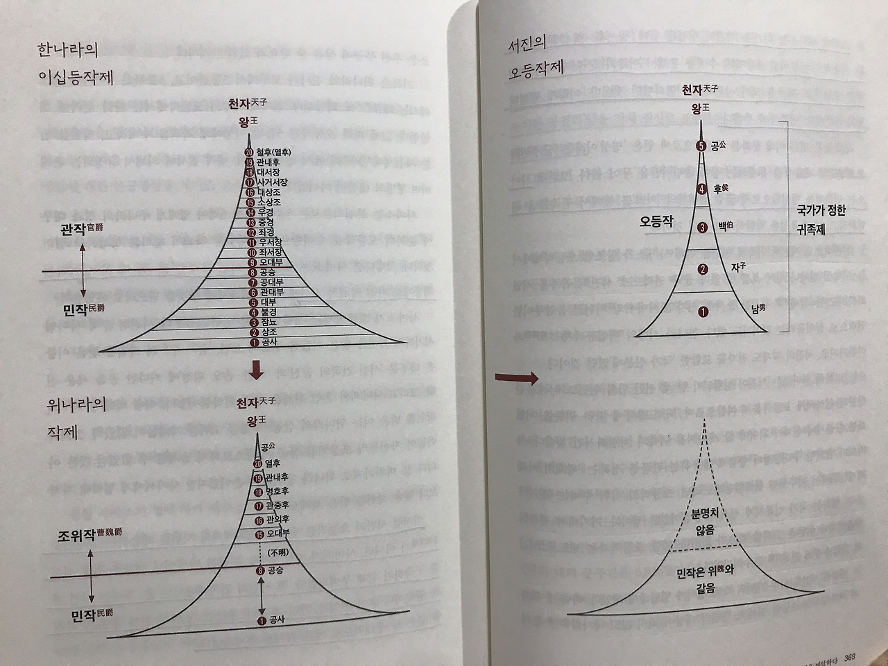 요컨대 (사마의의 아들) 사마소는 다가올 서진의 성립을 위해 '공-후-백-자-남'이라는 계층제로 이루어진 '오등작(五等爵)'의 수여를 통해서 귀족과 군주권력의 긴밀성을 표현하고, '귀족'을 국가 신분제로 서열화했던 것이다. 이렇게 형성된 국가 신분제를 '귀족제'라 부른다... 사마소는 '귀족제'를 형성함으로써 군주권력과의 거리를 통해서 '귀족'들을 서열화하고, 그 '자율성'을 박탈하려고 했던 것이다."