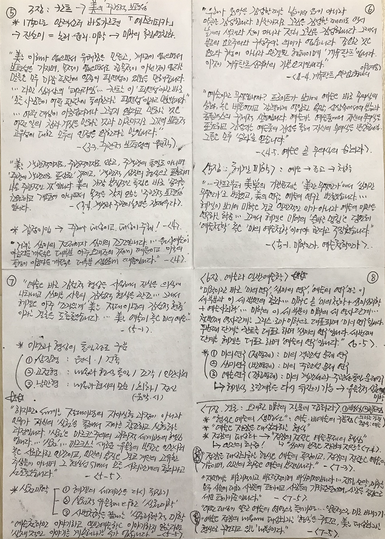 "예술은 정감의 '내용'에게 대상화라는 '형식'을 주었고, 미는 대상화라는 '형식'으로 구현되고 있는 '내용'입니다."
