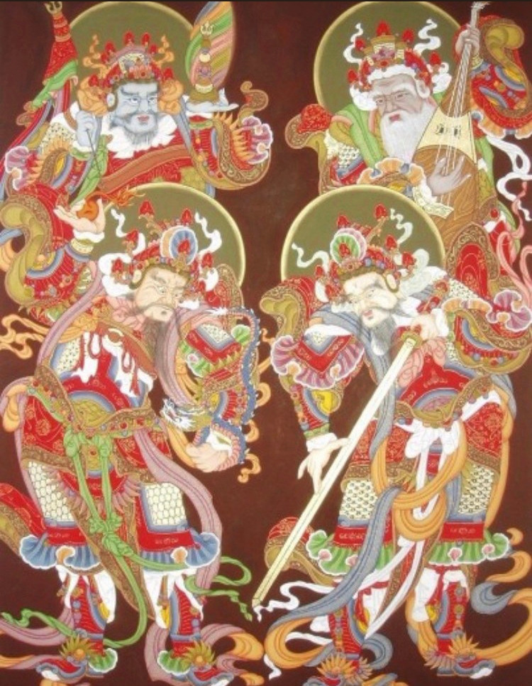 '불교'의 '사천왕', 즉 동쪽의 '지국천왕', 서쪽의 '광목천왕', 남쪽의 '증장천왕', 북쪽의 '다문천왕'이다. 중앙은 바로 부처다.
