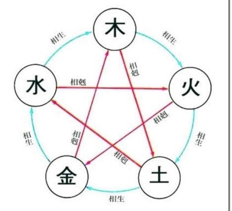 '동(東)'은 '목(木)'이요 '청(靑)색', '서(西)'는 '금(金)'이요 백(白)색', '남(南)'은 '화(火)'요 '적(赤)색', '북(北)'은 '수(水)'요 '흑(黑)색'이며, 만물을 낳는 '토(土)'는 '중앙(中央)'이요 '황(黃)색'이다.