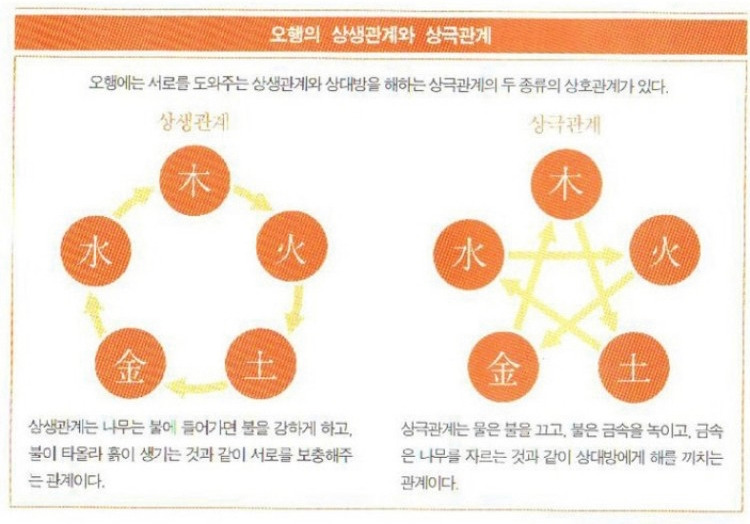 '오행'은 각기 '동서남북(東西南北)'과 '중앙(中央)'을 이른다.