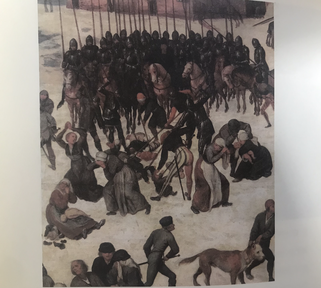 즉, 구세주 예수를 싹부터 제거하기 위해 헤롯왕이 그 해에 같이 태어난 남자아이들을 색출하여 죽였다는 <마태복음>의 기사인데, 16세기 네덜란드 화가 피터르 브뢰겔 부자가 그림으로 남기기도 했다. 아버지 브뢰겔의 그림에서 항아리나 가금류 등으로 후대 누군가에 의해 덧칠되고 수정된 모호한 주제는 아들 브뢰겔의 <베들레헴의 호구조사>라는 그림에서 아기들의 시체로서 사건의 전말을 드러낸다고 한다.
