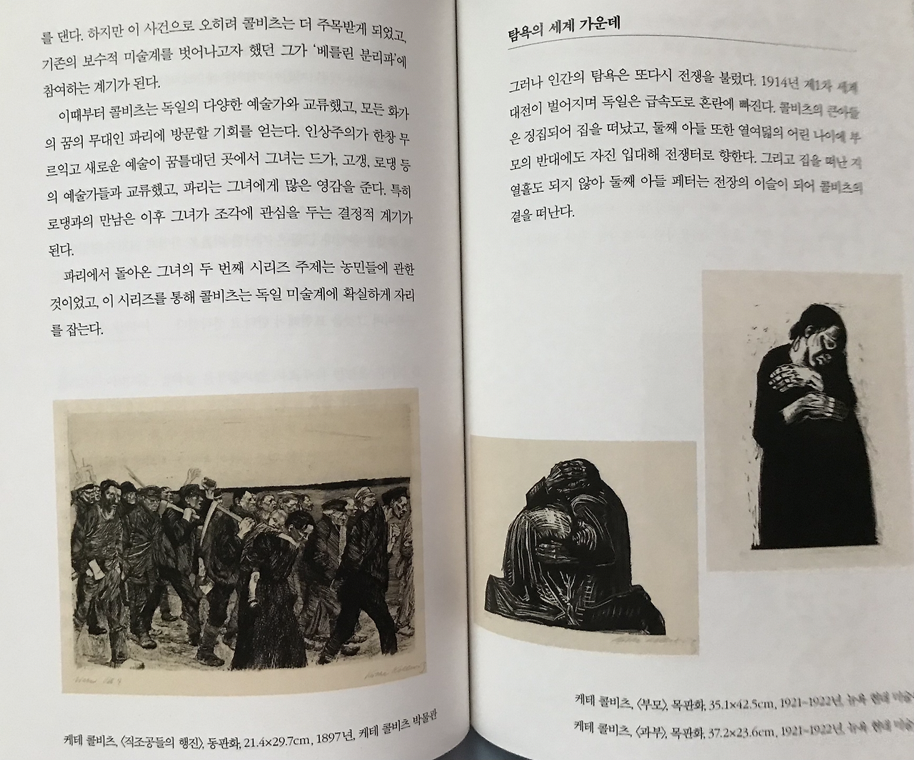 법학을 전공한 지식인이었지만 스스로 노동자가 된 아버지의 영향으로, 19세기 여성이지만 미술가가 된 콜비츠는 평생 노동자와 빈민의 현실을 대변하고 전쟁에 반대하는 삶을 살았다.