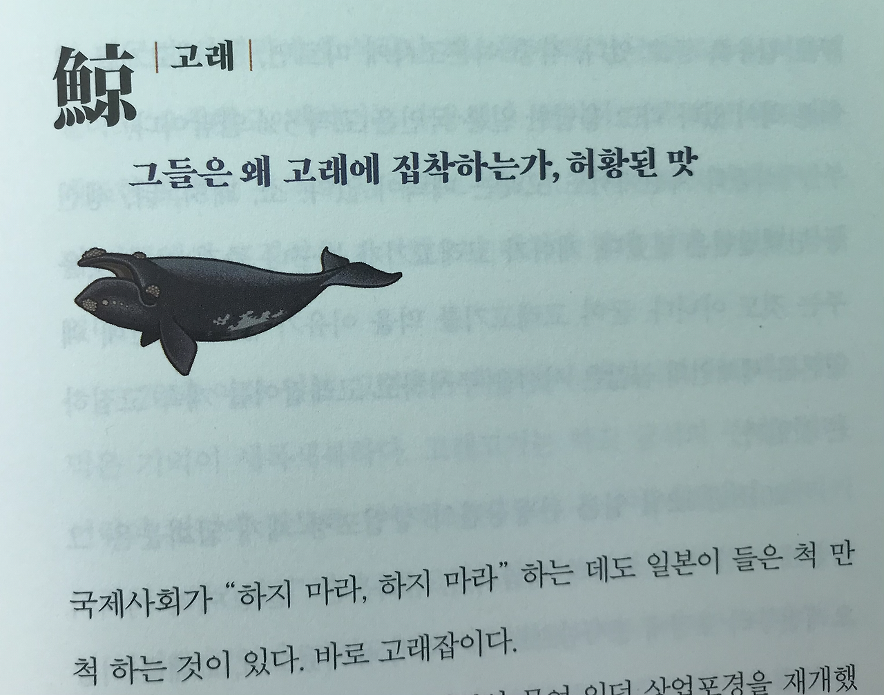 일본의 고래(鯨/경) 잡이는 끈질기다는데 전후 일본인을 먹여살린 고래를 신성시하는 점도 있겠지만 [모비 딕]의 에이해브 선장이 오래전 다리를 잃은 장소가 일본 근해였던 것처럼 일본이 고래와 가까운 문화였기 때문일 수도 있겠다. 다만 후쿠시마 방류처럼 다른 나라는 무시하고 제멋대로 처신하는 일본 우익정권의 행태는 참 일관적이라는 생각은 든다.