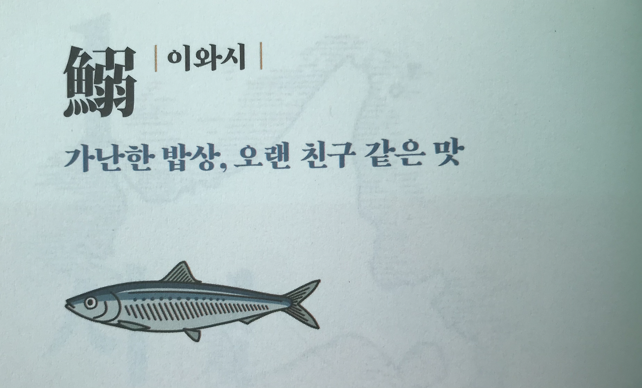 이 책의 첫 장을 여는 이 물고기는 청어과 생선을 싸잡아 부르는 말로 정어리와 멸치 등속의 회유성 떼거리 어종을 이른다. 떼거리로 잡히니 많은 사람들이 질리게 먹다가 버리거나 비료로도 가공하는 식이다. 다수 약한 민중들의 물고기반찬이라 약할 약(弱) 자 앞에 물고기 어(魚) 변을 붙였다. 그러나 다수의 힘을 지녀 어획량에 따라 일본 민중의 식생활을 좌지우지했다. 다수는 결코 약하지 않다.