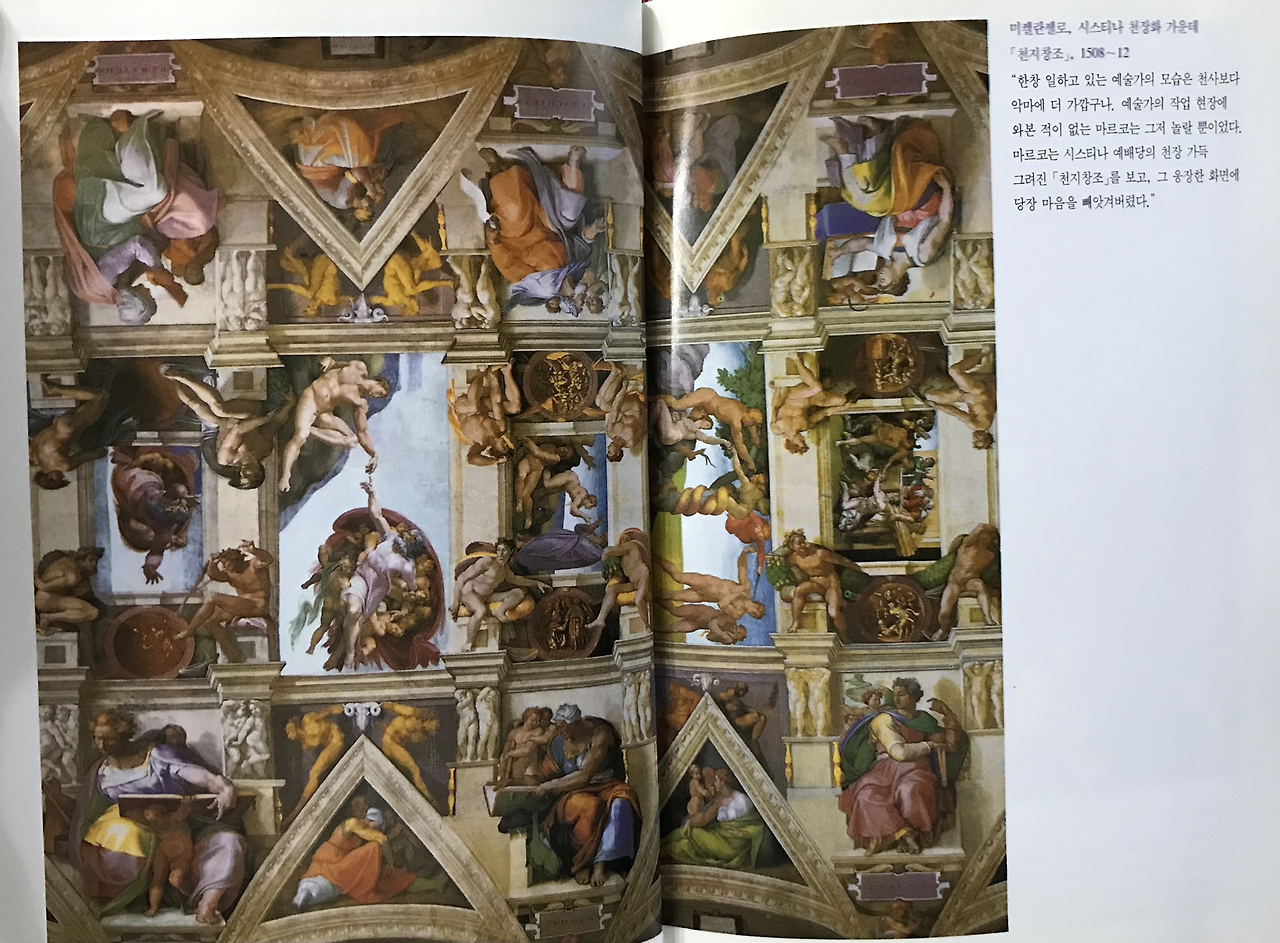 나는 [천지창조] 등이 포함된 미켈란젤로의 시스티나 성당 천장화의 비밀을 담은 필리프 반덴베르크의 소설 [미켈란젤로의 복수]를 다음에 읽을 책으로 골랐는데, 이 또한 우연을 가장한 필연과도 같다는 생각을 한다.