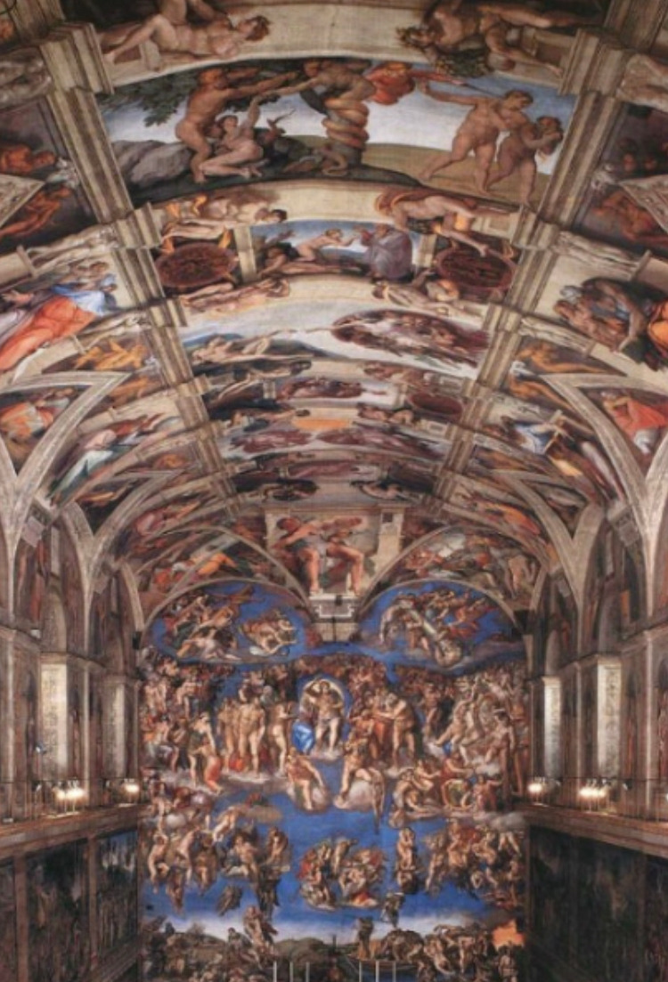 피렌체 출신 미켈란젤로가 교황 율리우스 2세의 부름을 받고 로마 시스티나 성당의 천장화와 제단화를 그렸을 때, 일찍이 열네살부터 붓 대신 끌을 잡기로 결심했던 미켈란젤로는 교황이 조각가인 본인에게 화가처럼 그림을 그리게 한 사실에 분노했다고 전해진다. 그래서 그는 신약성서를 그리라는 교황의 요청과 달리 시스티나 예배당의 천장에 창세기부터 아담과 이브의 창조와 추방, 노아의 대홍수 같은 구약성서 이야기를 중심으로 그렸고 둘레를 그리스식 남녀 예언자들로 장식했다. 일반적으로 이것이 미켈란젤로의 세속적인 '복수'로 알려져 있다.