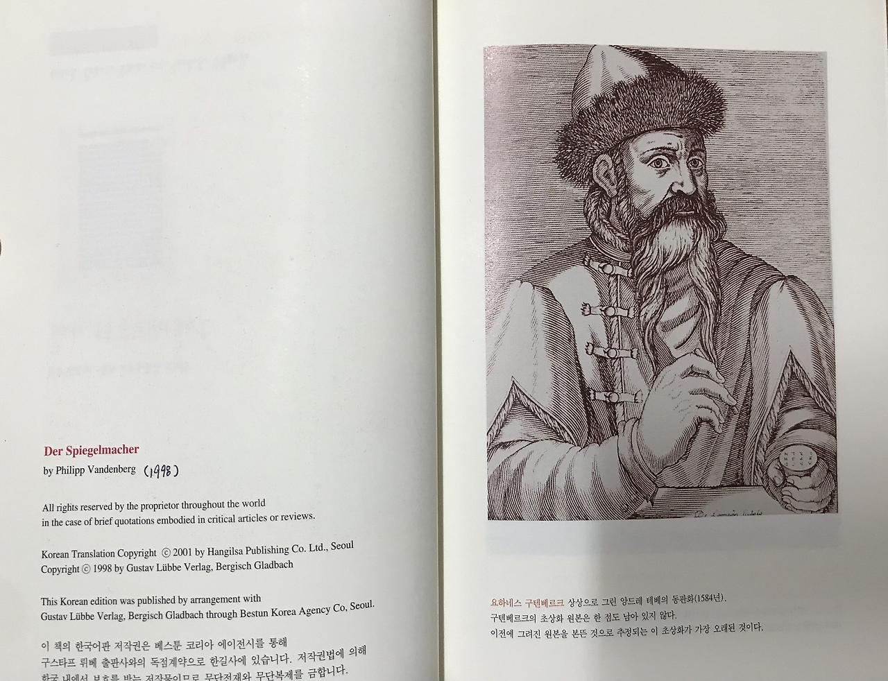 1. [구텐베르크의 가면(Der Spiegelmacher)](1998), Philipp Vandenberg, 최상안 옮김, <한길사>, 2001.