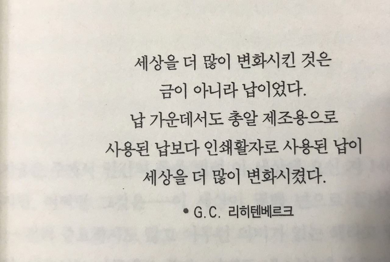 구텐베르크의 금속 활자 인쇄술이 인류의 인문학적 문명사에서 '혁명'으로 불리는 이유다.