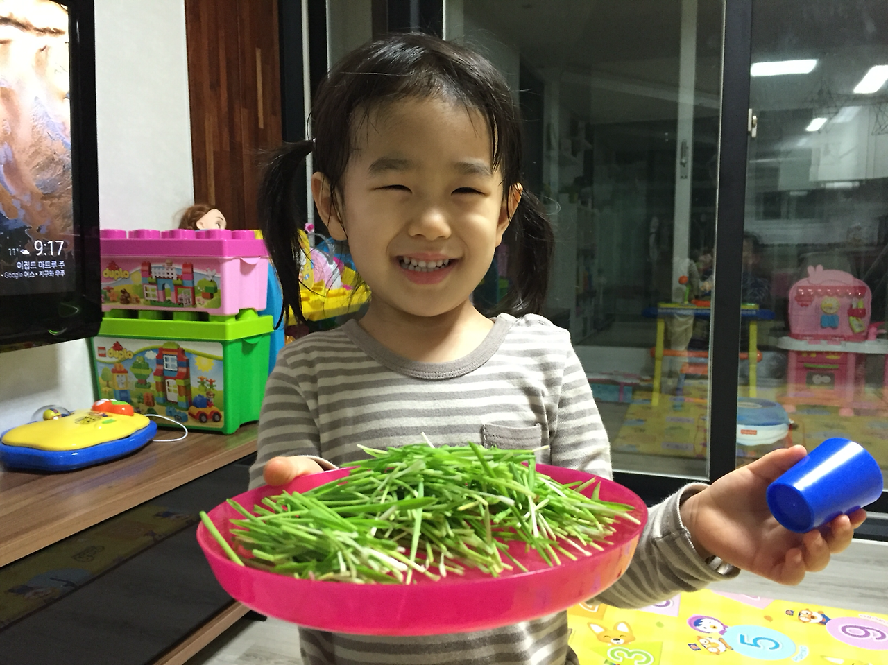 씨앗을 불리고 새싹 채소 재배 세트를 통해 키우는데 대략 2주 정도의 시간이 걸린다. 하지만 매일 매일 어느 정도 자랐는지 체크하고 관심을 기울이는 일, 내 정성을 통해 식물의 성장을 체험하는 과정은 분명 정서적으로 아이에게 도움이 될 것 같다.