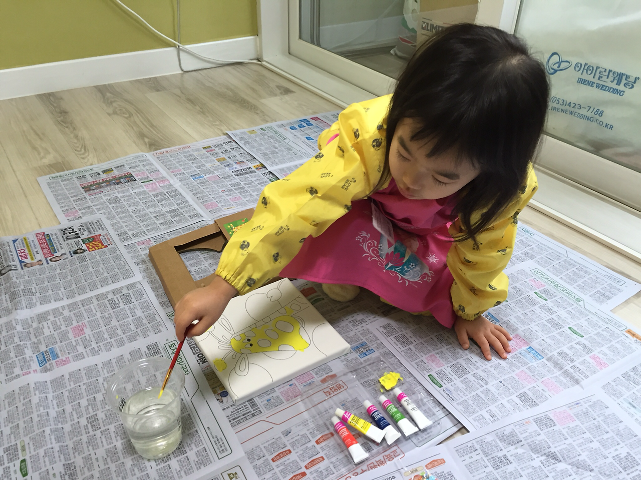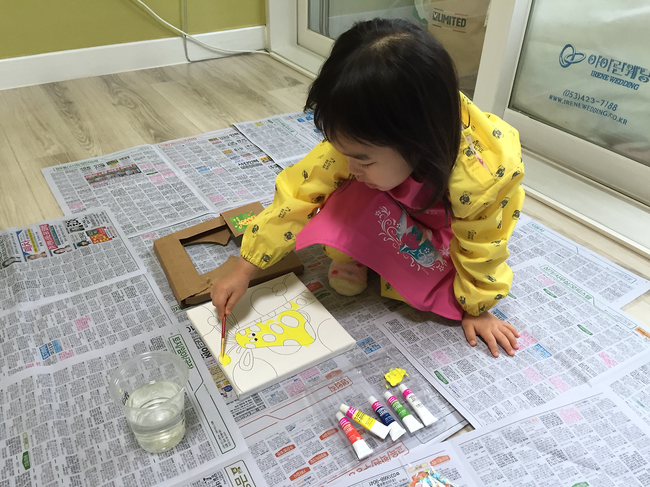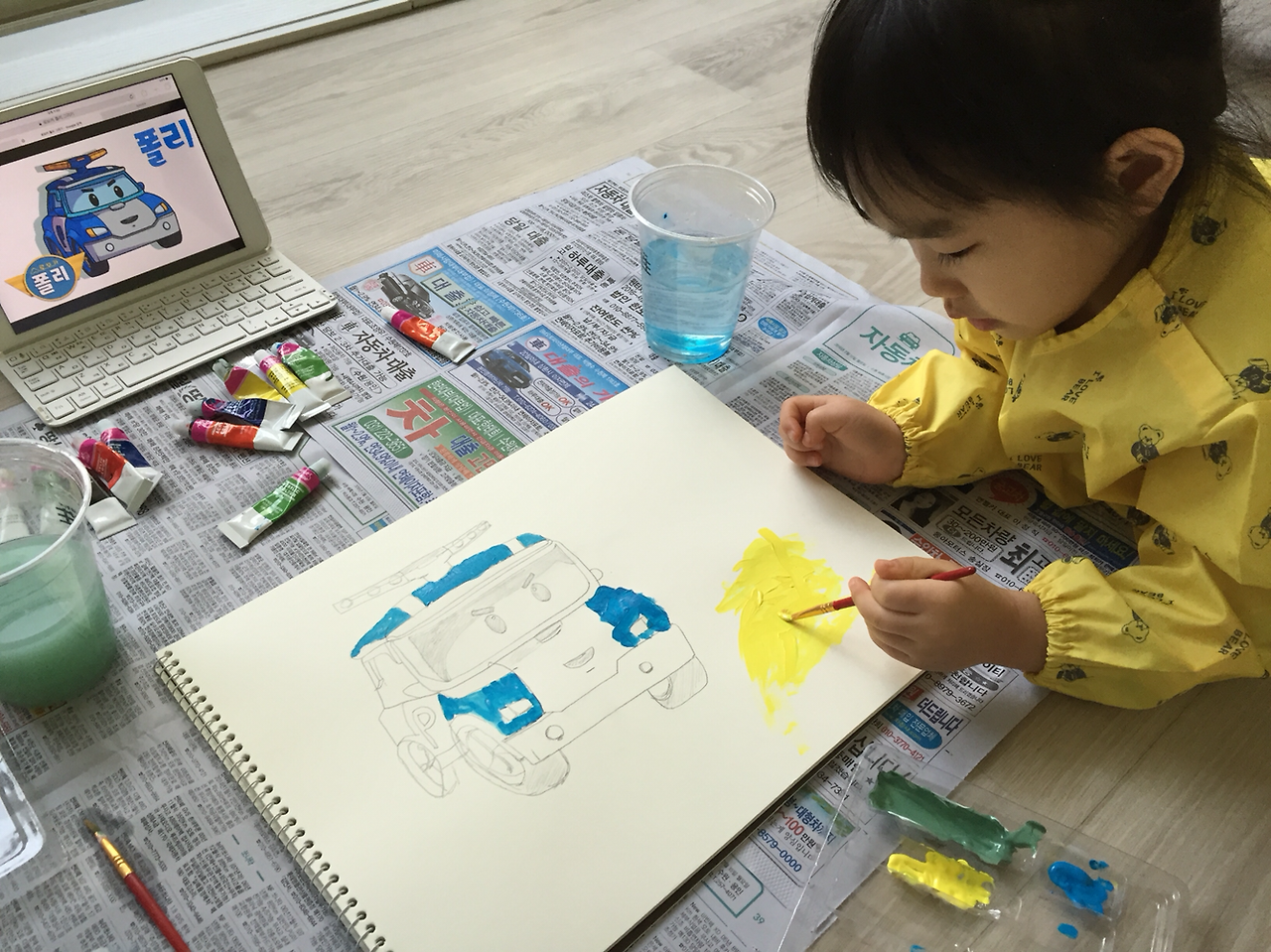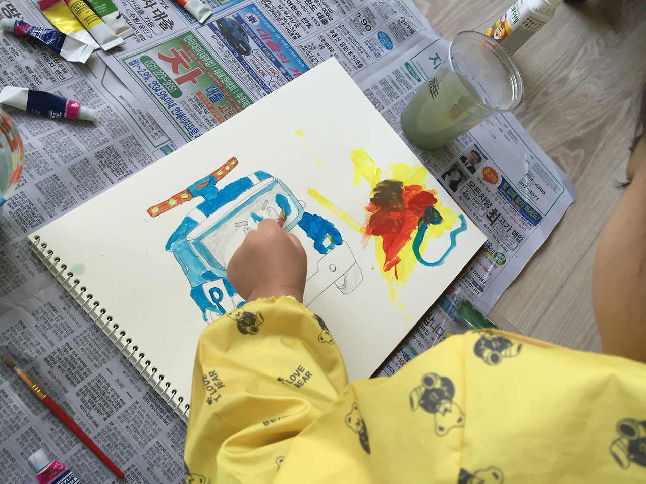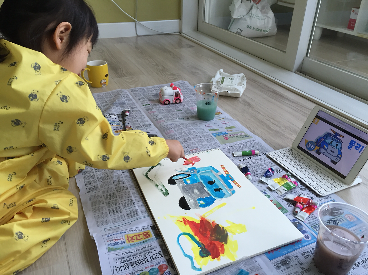 처음엔 어색하고 힘들 수 있다. 여기저기 물감이 튀고 제어가 되지 않아서 포기할까라는 생각도 든다. 하지만 아이의 집중력과 상상력이 담긴 그림을 보고 나면 분명 생각이 바뀐다. 뭔가 어색하고 부족한 듯 싶지만 한편으론 대견한 기분, 뿌듯한 생각이 든다.