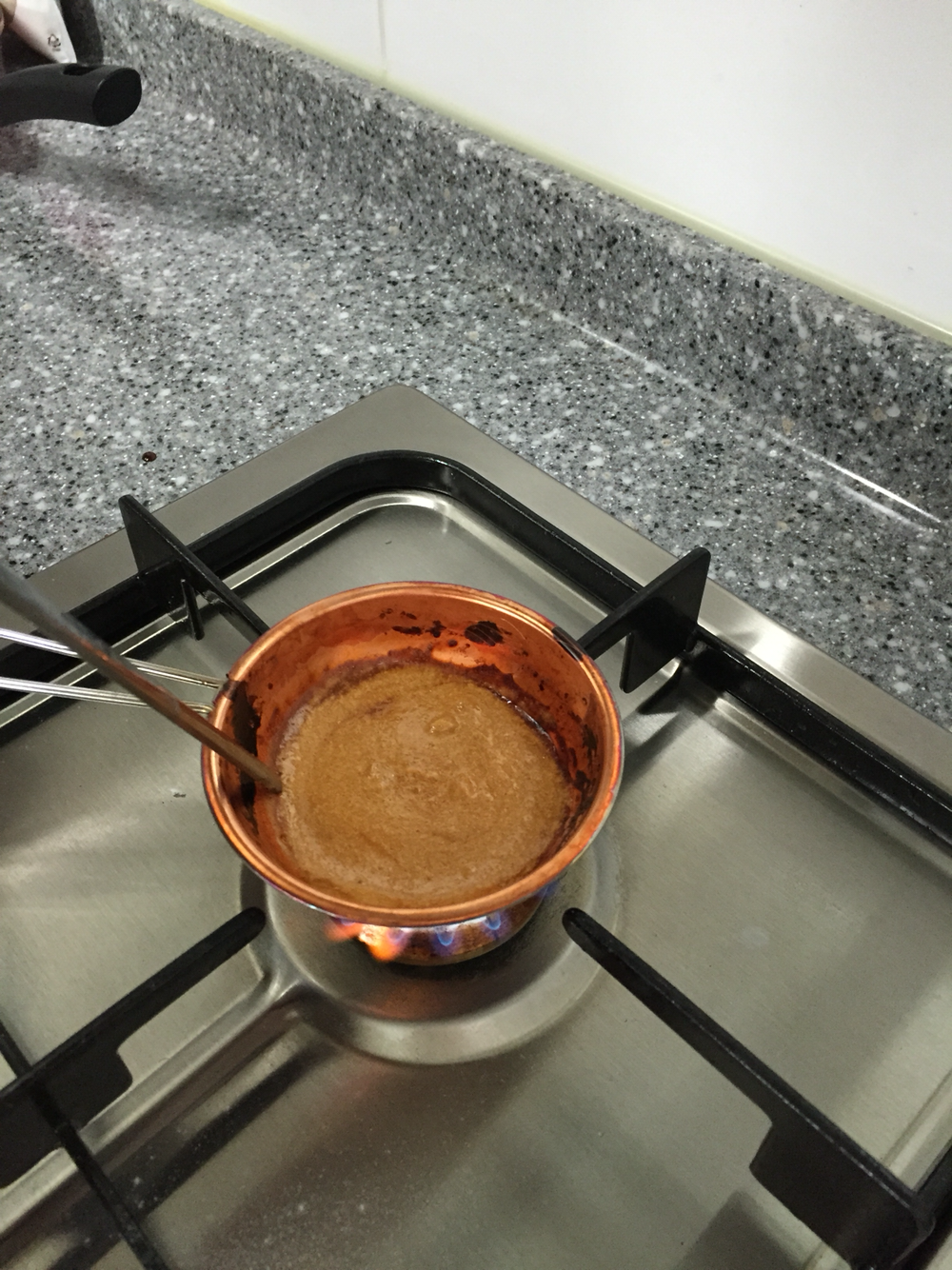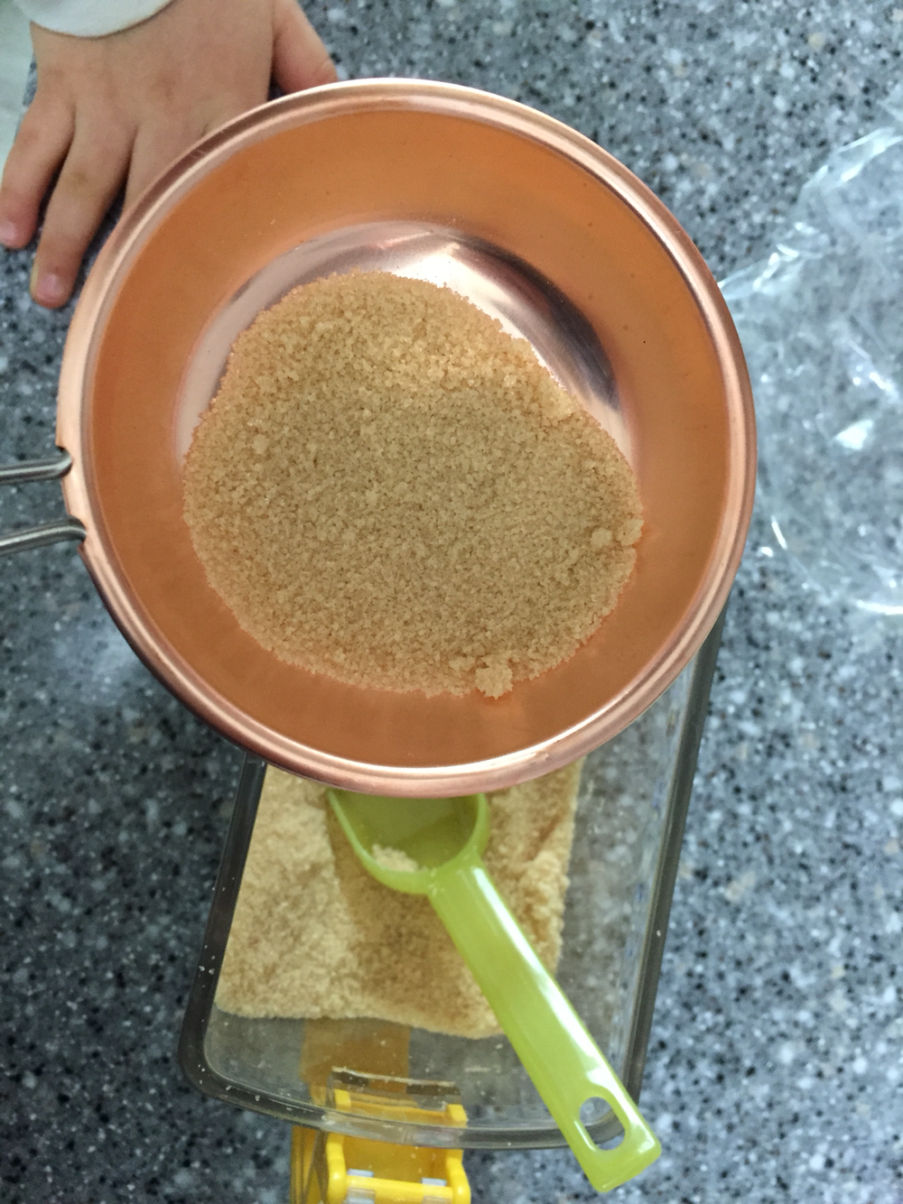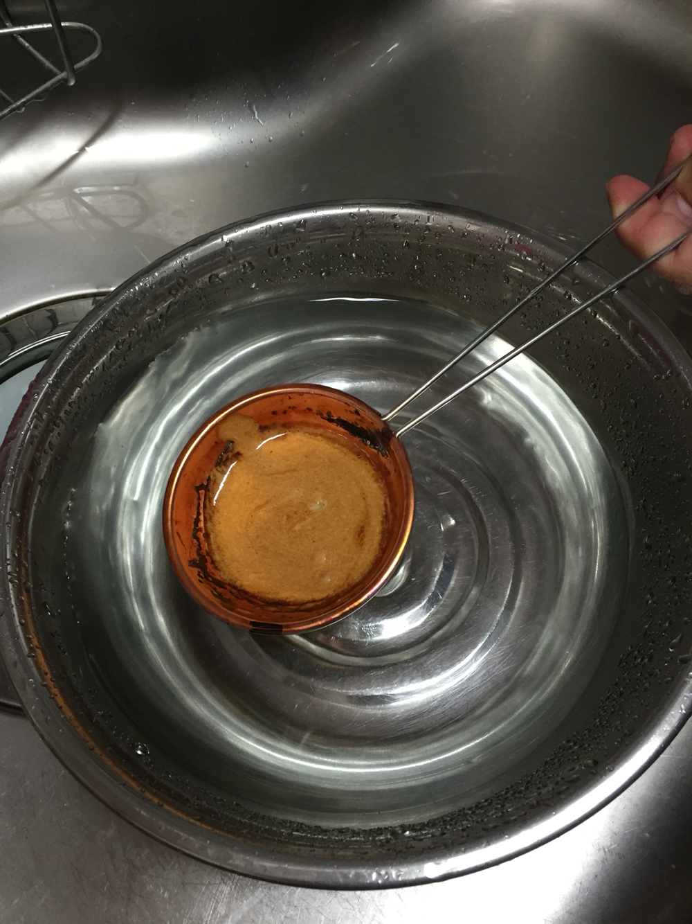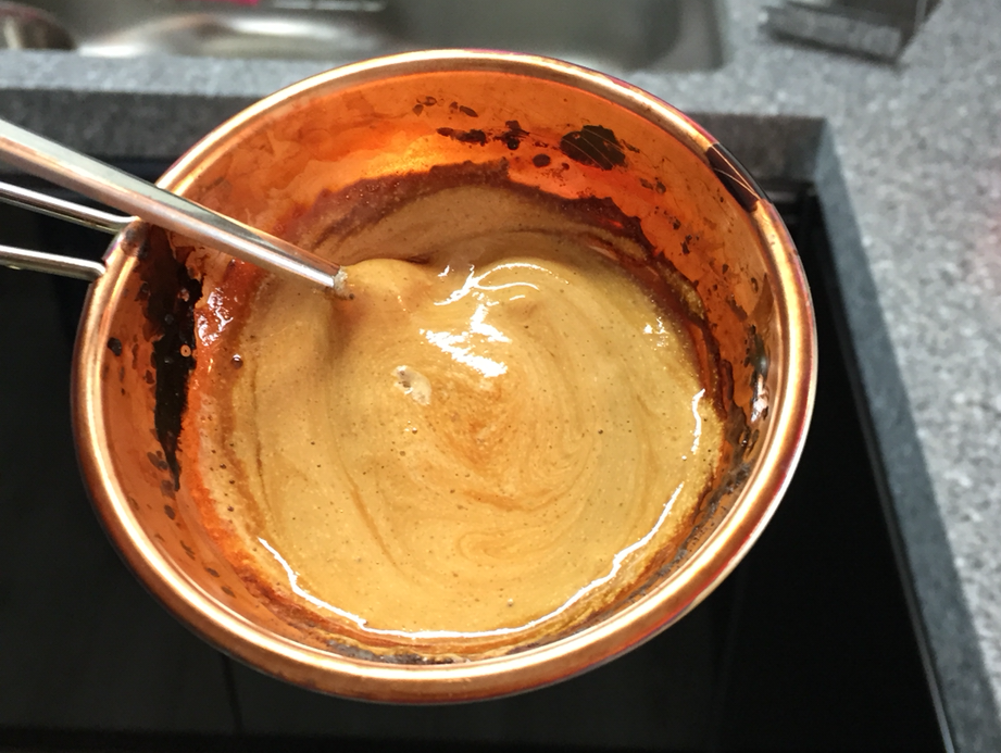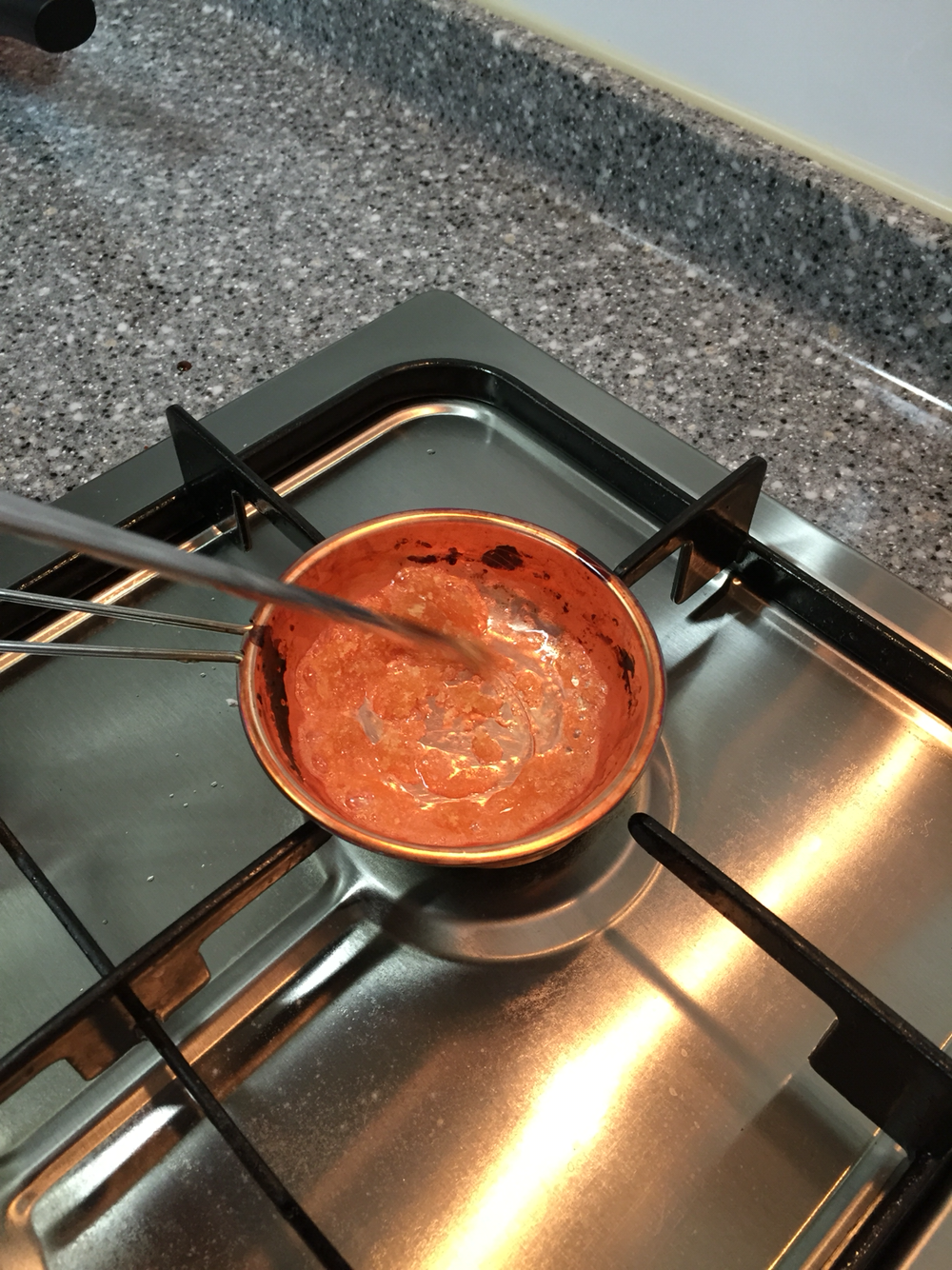 잘 젓지 않으면 금세 탄다. 설탕 가루가 액체가 될 때 바로 소다를 넣어서 태우지 않고 부풀어 오르게 하는 게 중요하다.