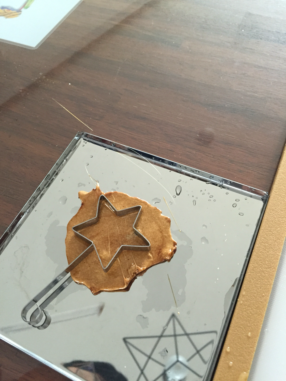 05. 떼어낸 달고나 조각을 판에 얹는다.