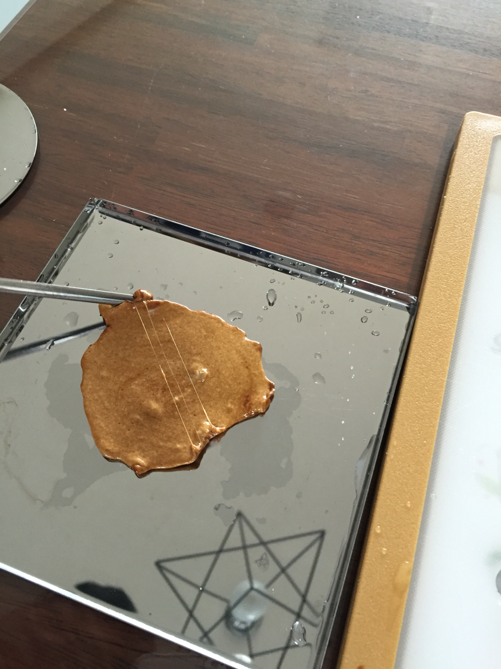 물에 식힌 후 다시 녹여내는 방법을 선택했다. 달고나가 액체상태에서 너무 빨리 굳어버려서 이 방법이 조금 더 쉽다.