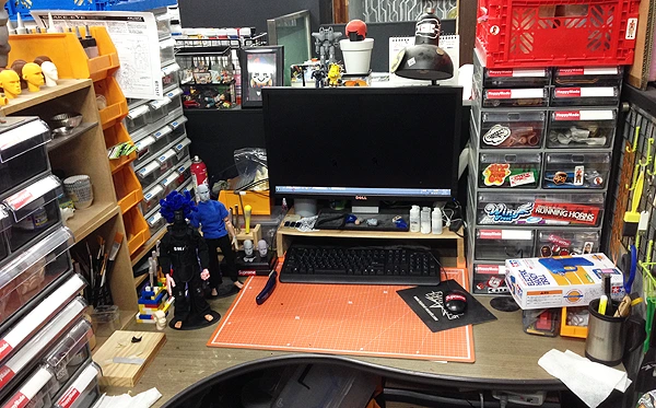 아래는 2012년부터 2015년까지의 작업실 책상 사진입니다. 시작할 때는 스컬피로 피규어를 만들었는데 작업을 하다보니 3D 모델링이 대세가 되서 작업방법을 3D로 변경하게 되었습니다. 그래서 컴퓨터도 있고 책상이 갈수록 좁아지게 되었습니다. 피규어도 만들지만 공방생활을 하면서 프라모델도 같이 만들게 되면서 더 복잡하게 되었습니다.