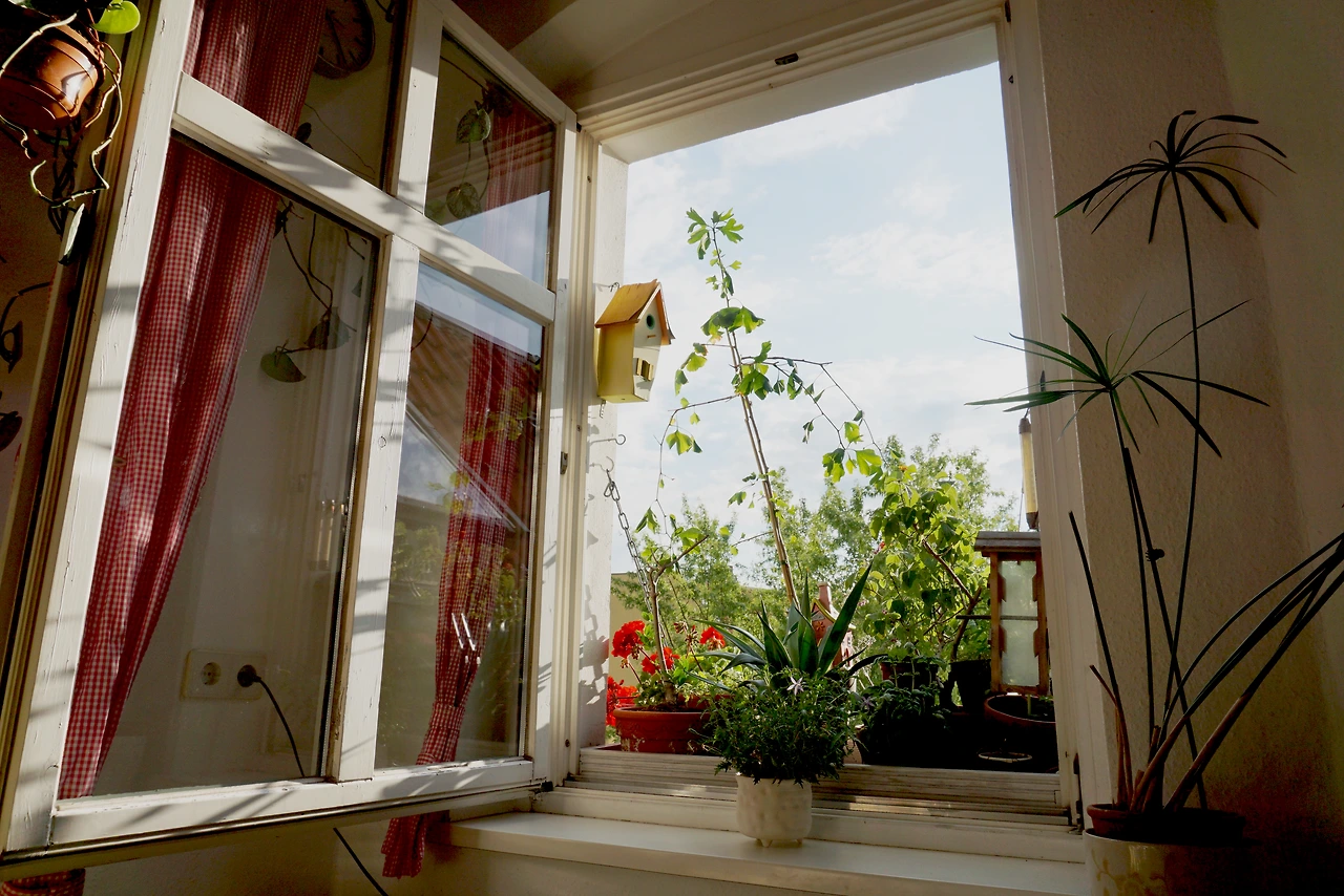 다시 바람이 창문 앞 꽃과 풀을 흔들자.