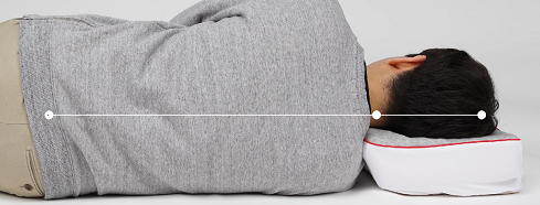 옆으로 누워서 자고 싶으면, 옆으로 누워서 잘 때의 전용 베개도 따로 있다. 내 어깨선에 딱 맞는 높이의 베개를 쓰는데, 옆으로 누웠을 때 내 머리가 위로 떠도 안 되고 아래로 푹 꺼져도 안 되고 위 사진처럼 척추가 일자가 되도록 베개 높이를 조절해야 한다. 나는 온라인에서 베개 통째로 빨아쓸 수 있는 솜베개를 두 개 사서 솜을 안에 집어넣다 뺐다 하면서 나에게 가장 알맞게 높이를 조절했다. 아주 부드러운 솜이라서 목에 무리가 가지 않아서 만족했다.